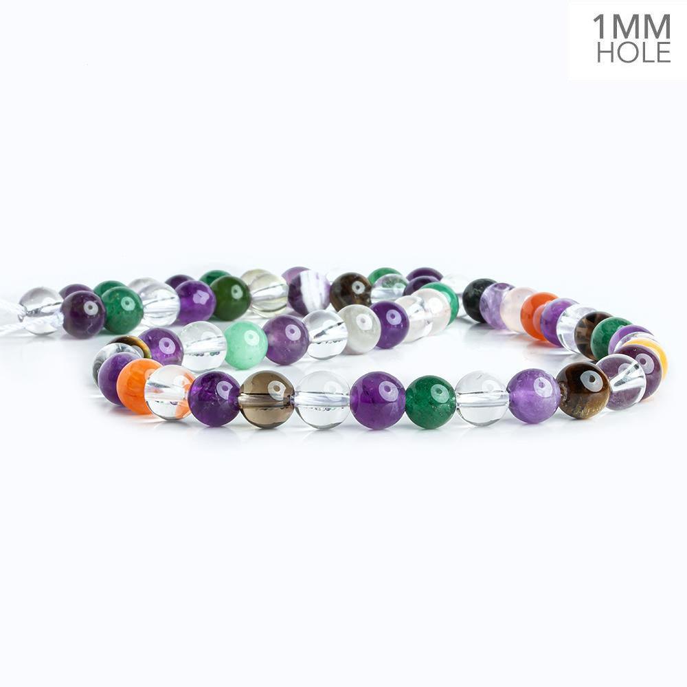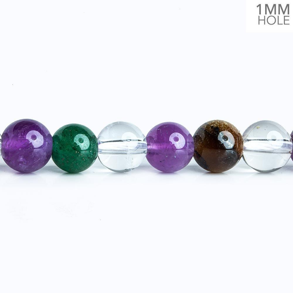 These expertly curated Multi Gemstone Plain round beads measure 7.5mm in diameter with a 1mm hole and feature Amethyst, Crystal Quartz, Aventurine, Tiger's Eye! Beads have 1mm Large Drill Hole.