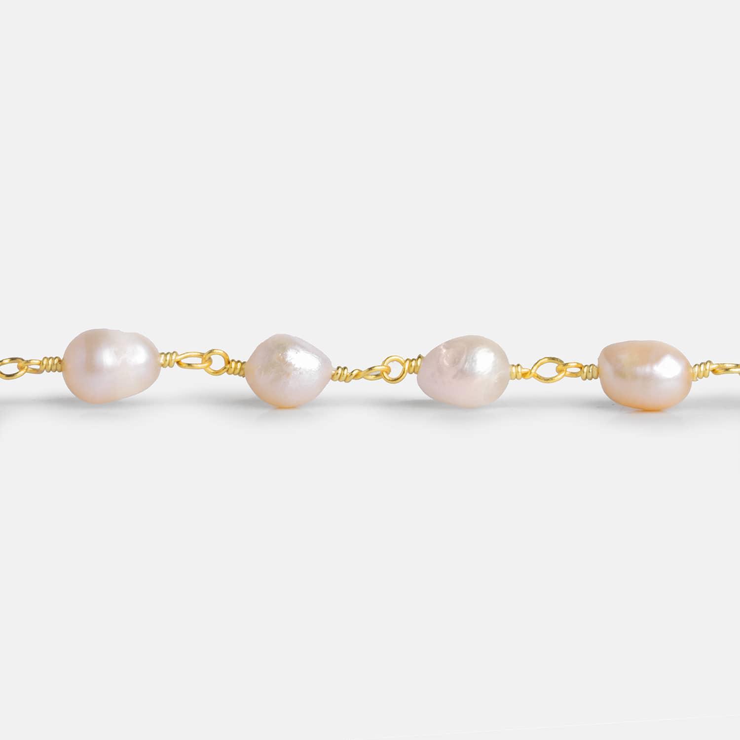 7.5x6.5mm Light Peach Baroque Freshwater Pearl Gold Chain