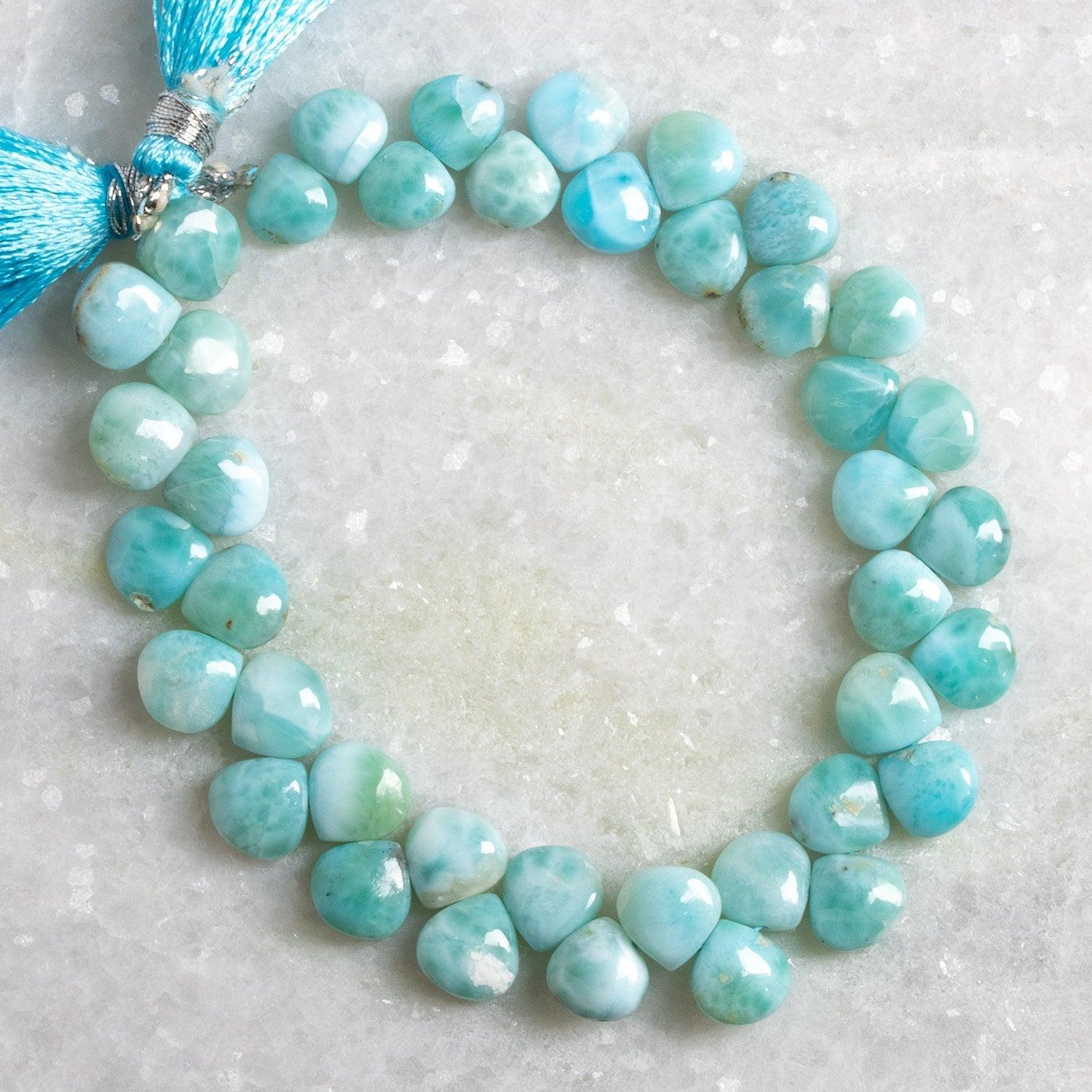 7-8mm Larimar Plain Hearts 7.5 inch 40 beads