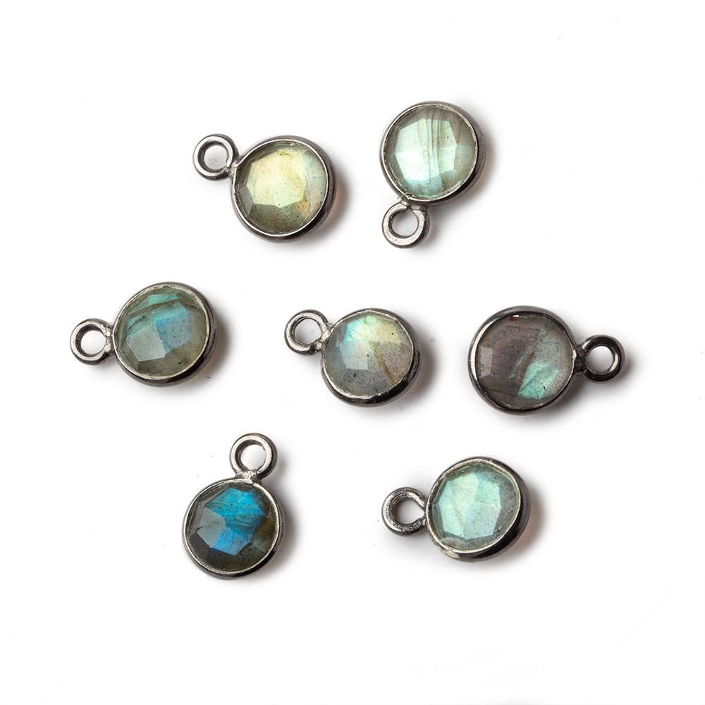 7mm Black Gold .925 Bezel Labradorite faceted coin focal Pendant Set of 4 pieces