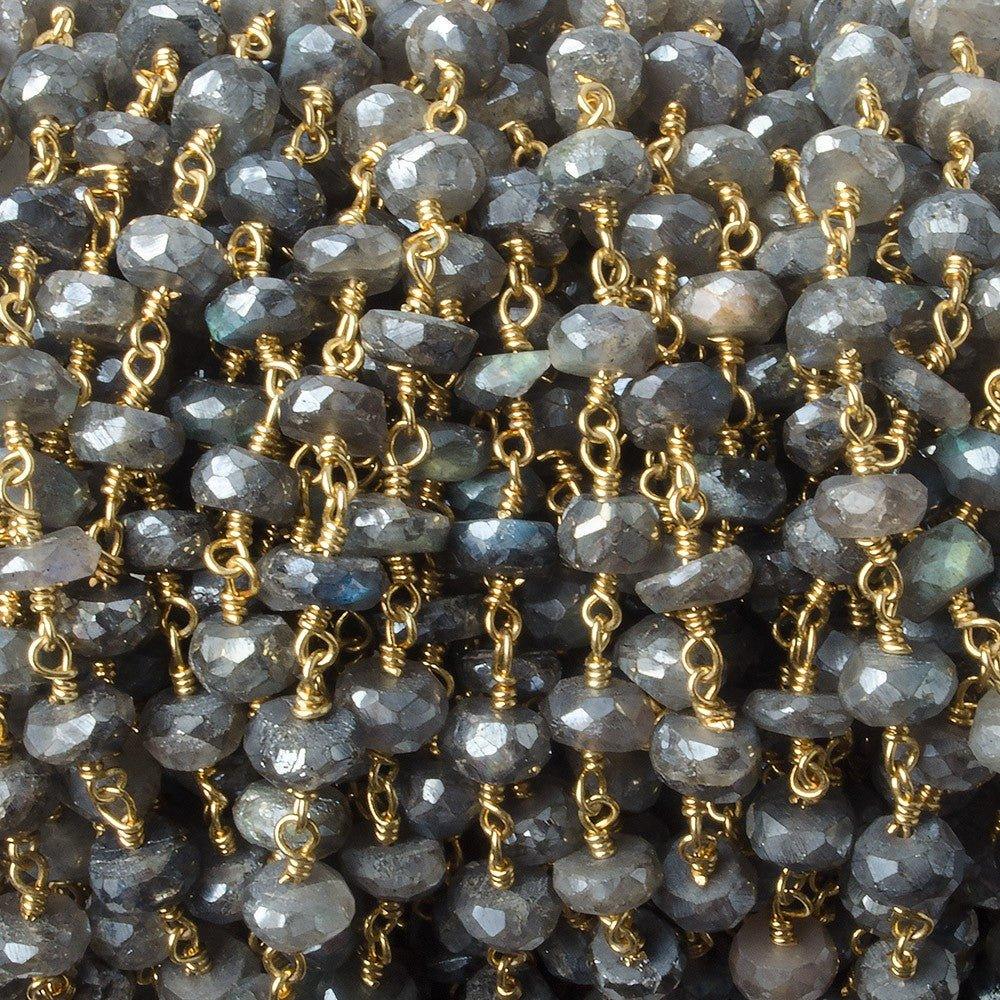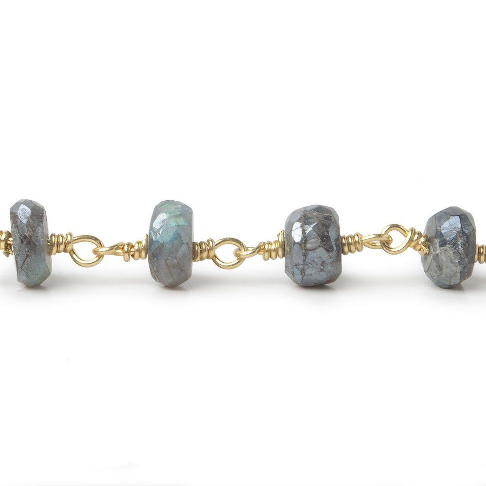 7mm Mystic Labradorite Gold plated Chain by the foot 28 beads