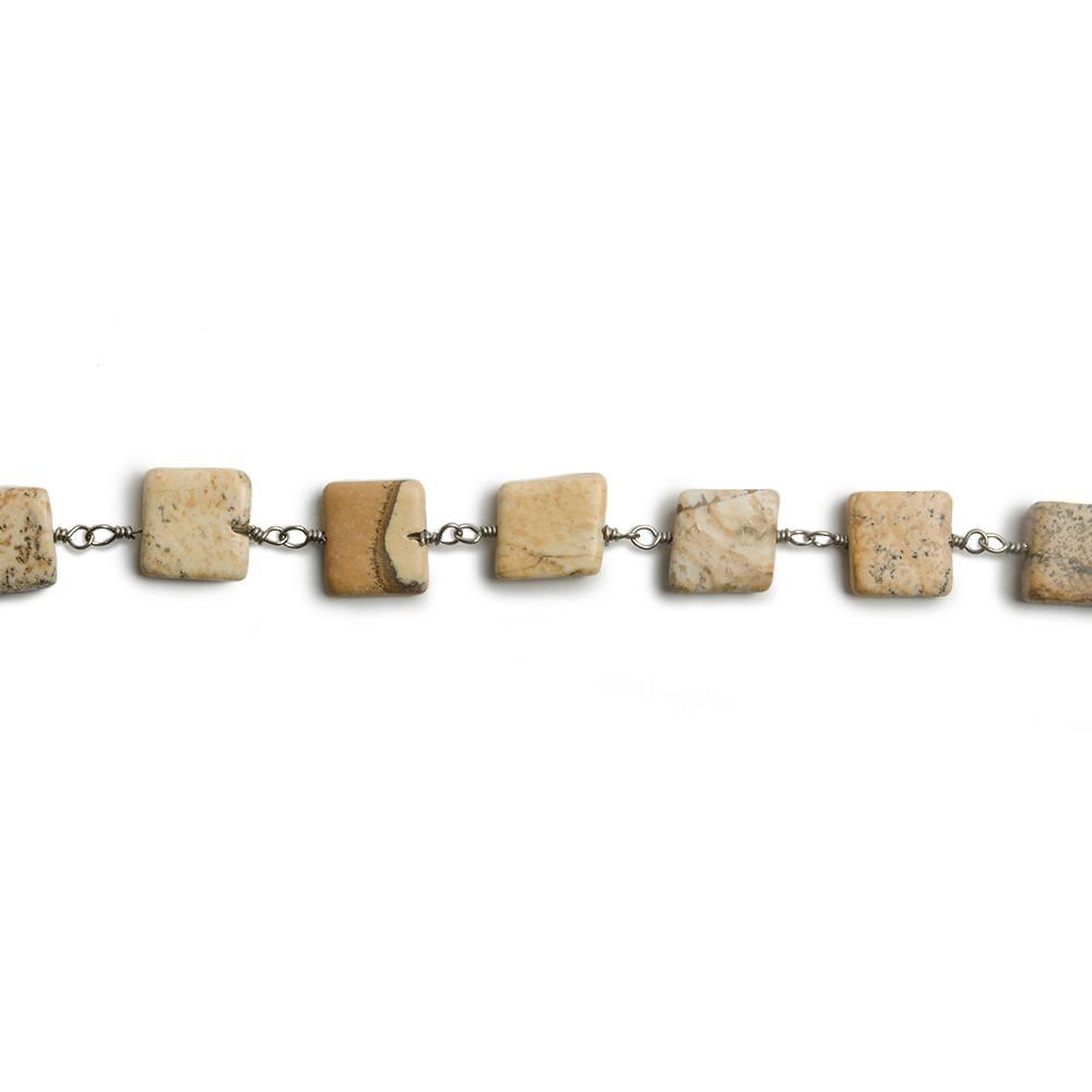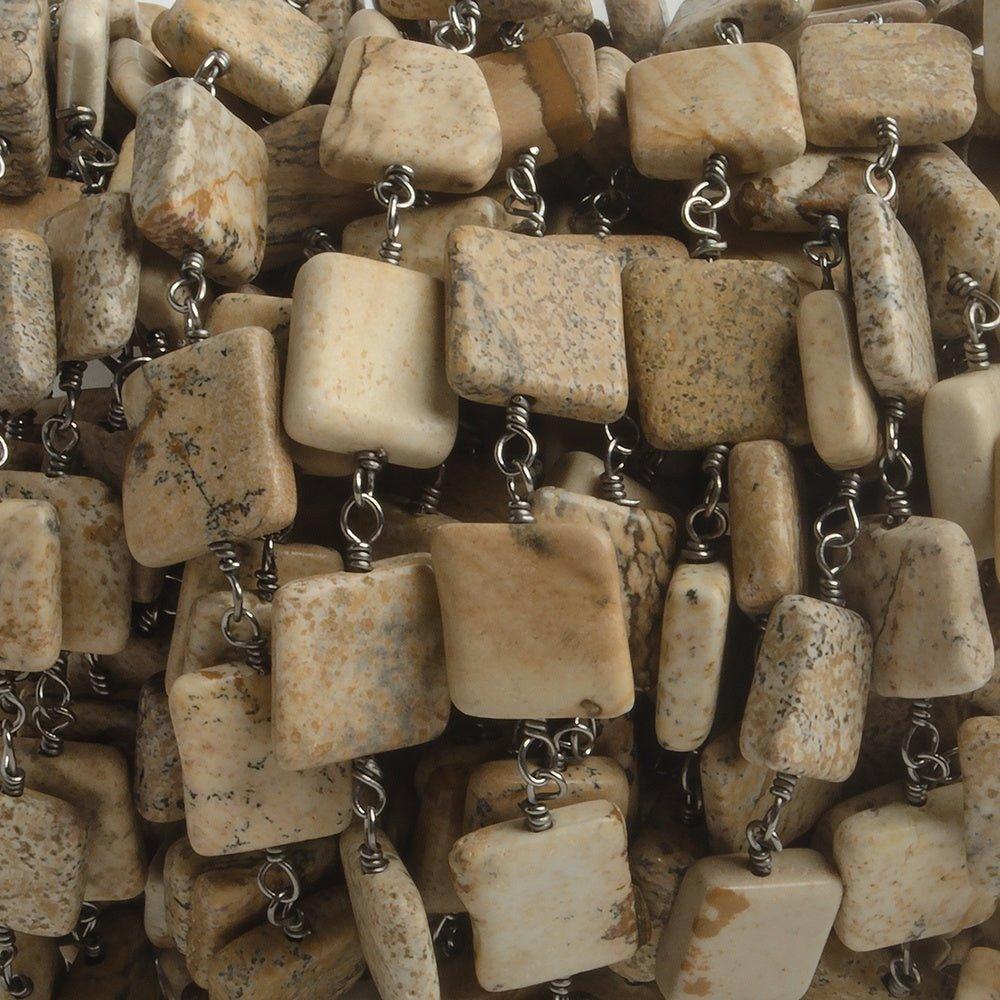 Picture Jasper Plain Square Black Gold plated Chain sold by the foot 21 beads measuring approximately 7mm in diameter.