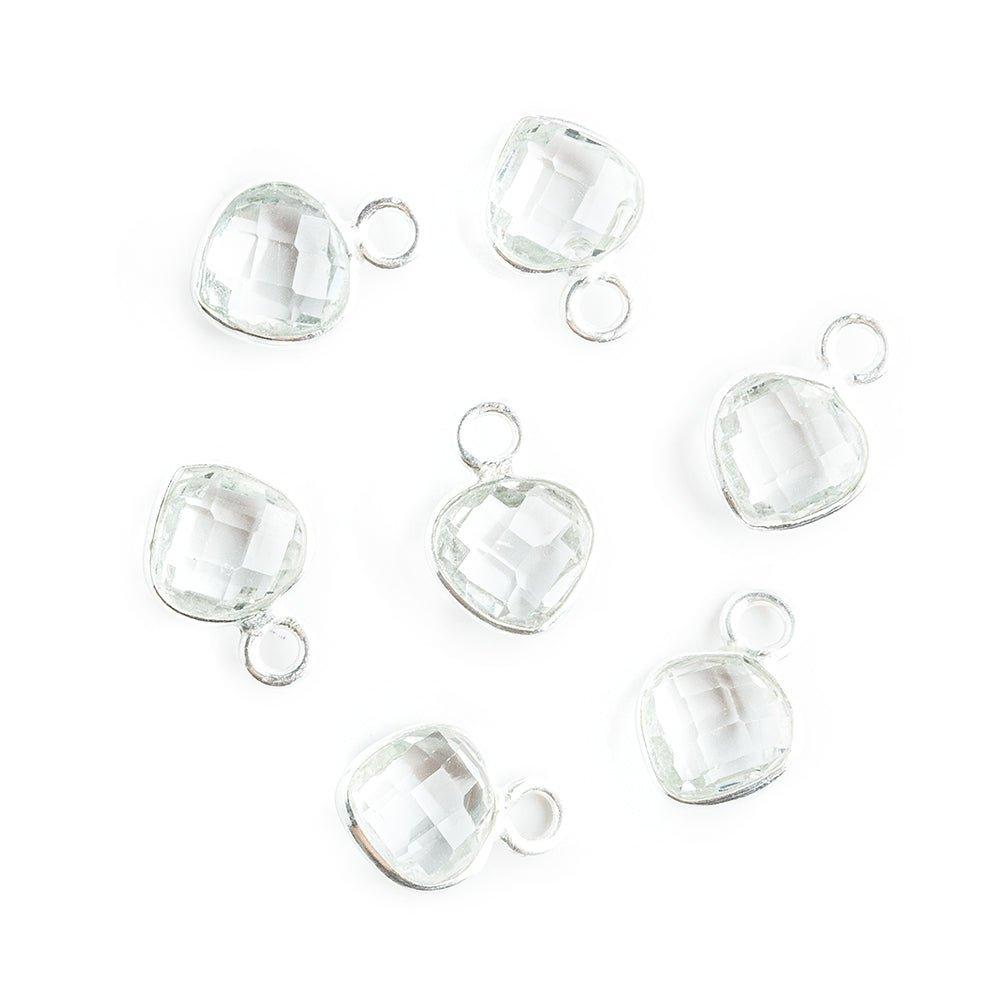 7mm Silver Bezeled Clear HydroQuartz Heart Pendants set of 4 pieces sold as a Man-Made Crystal Quartz gemstone called Hydro Quartz due to its method of creation.