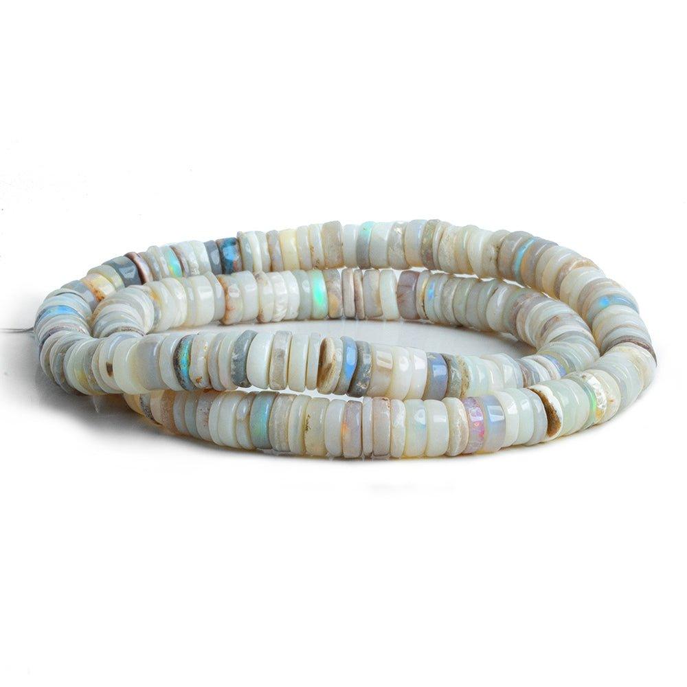 Beads measure about 7mm in diameter. These gorgeous beads have light tan bodies with a plethora of subtle colors mingling with bright opalescent fire. Expect some variation in thickness of bead bodies, with plenty of beads exhibiting in all your favorite hues of precious opal flash!