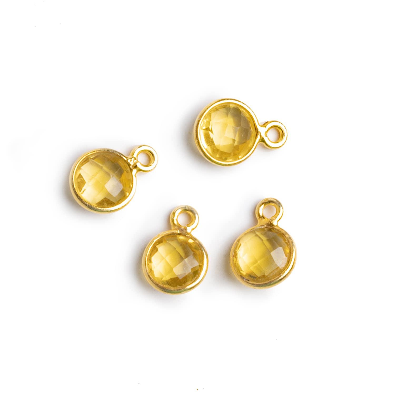 7mm Vermeil Bezeled Yellow Quartz Coin Pendants Set of 4 pieces