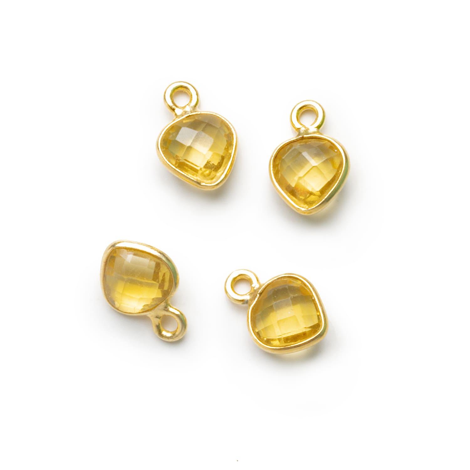 7mm Vermeil Bezeled Yellow Quartz Heart Pendants Set of 4 pieces