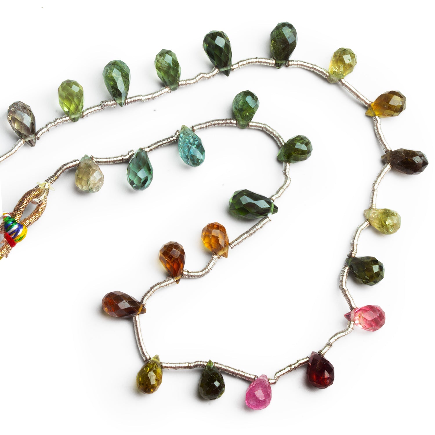 Strung in a stunning assortment, these teardrops are ideal for creating eye-catching pendants, statement earrings, or luxurious clustered necklaces. Their elongated silhouette adds graceful movement to designs, while the natural variety of tones ensures every piece feels unique and one-of-a-kind. A perfect choice for jewelers seeking both elegance and the vibrant spectrum that only fine-quality tourmaline can offer.