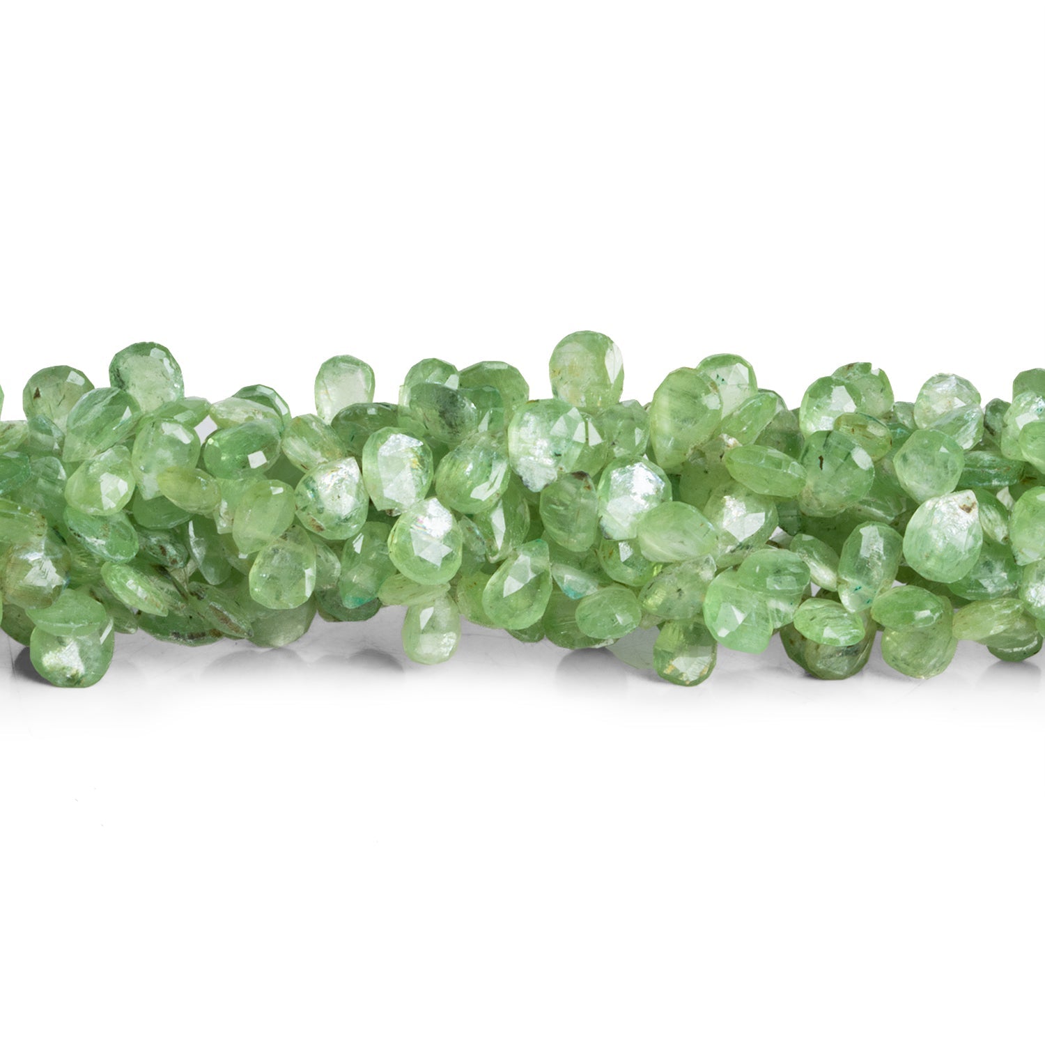 Beads measure about 6x4mm to 7x5mm. These gorgeous, high-quality offerings feature a rich green color palette on dainty pears full of the flashy visual effects that make this gemstone a perennial favorite. Imbue your next slate of Jewelry Designs with the eye-popping aura of Green Kyanite, perfect for everything from matching earrings to sophisticated necklaces and more.