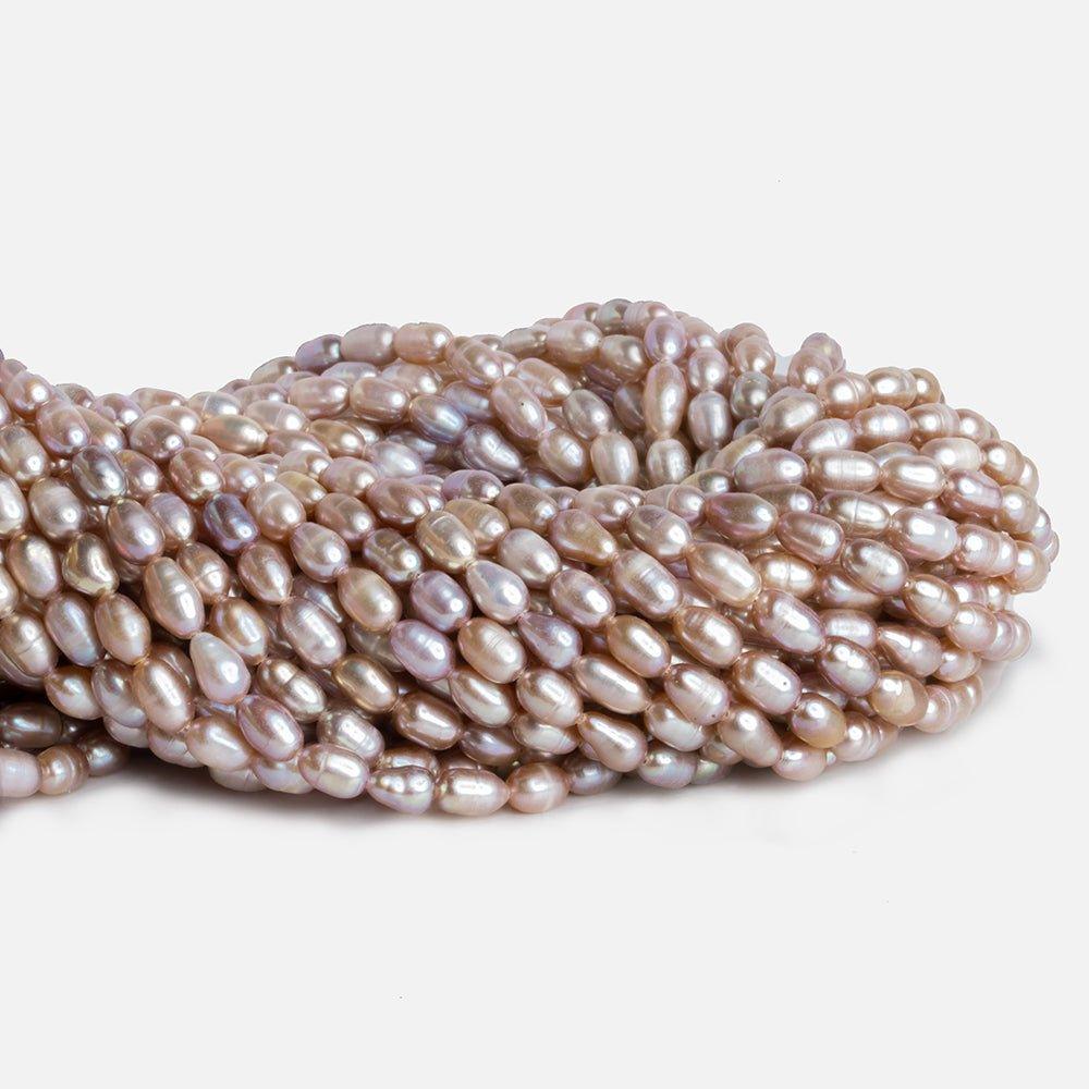 Pearls average about 7x5mm with some slight variation. These gorgeous Baroque Freshwater Pearls feature a light, pink color palette across straight drilled, almost oval shaped bodies. These are a great catch for any lover of silvery pink pearls! Be Pretty in Pink with your next exquisite necklace design, statement earring piece and more.