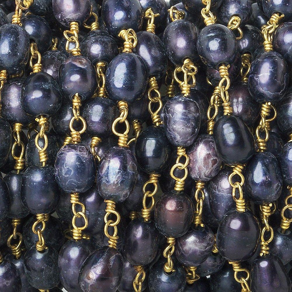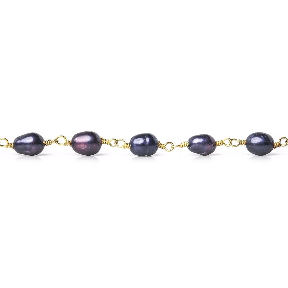 7x5mm measure for these Purple Oval Pearl Gold plated plated Chain sold by the foot with approximately 26 pieces.