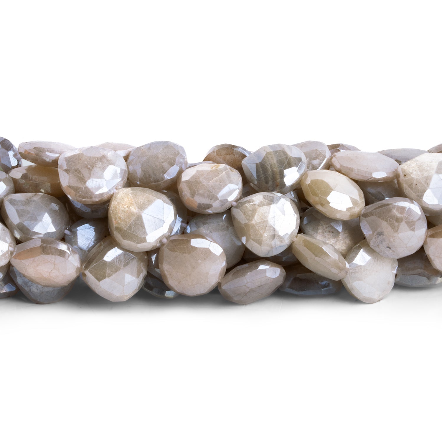 Beads measure about 8mm to 9mm in diameter. These dazzling beauties show off an unmatched sparkle and deep moonstone flash that are enhanced by the addition of our signature Mystic coating. Our high-quality, specially curated Platinum Moonstone hearts are destined to shine in virtually any Jewelry Design concept, capable of starring as focal beads in the most elegant pieces. Make sure to have a few strands of these exquisite beads when you sit down to your next slate of sophisticated Jewelry Designs, be they necklaces, earrings or whatever your inspiration takes you to.