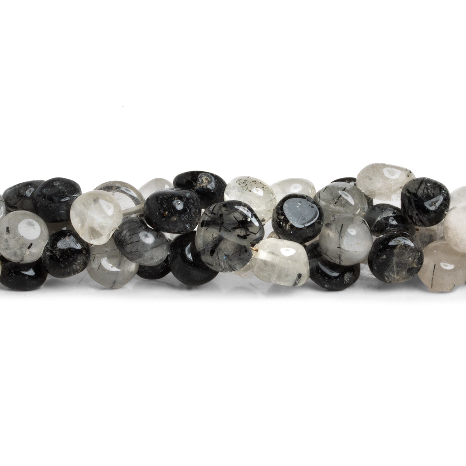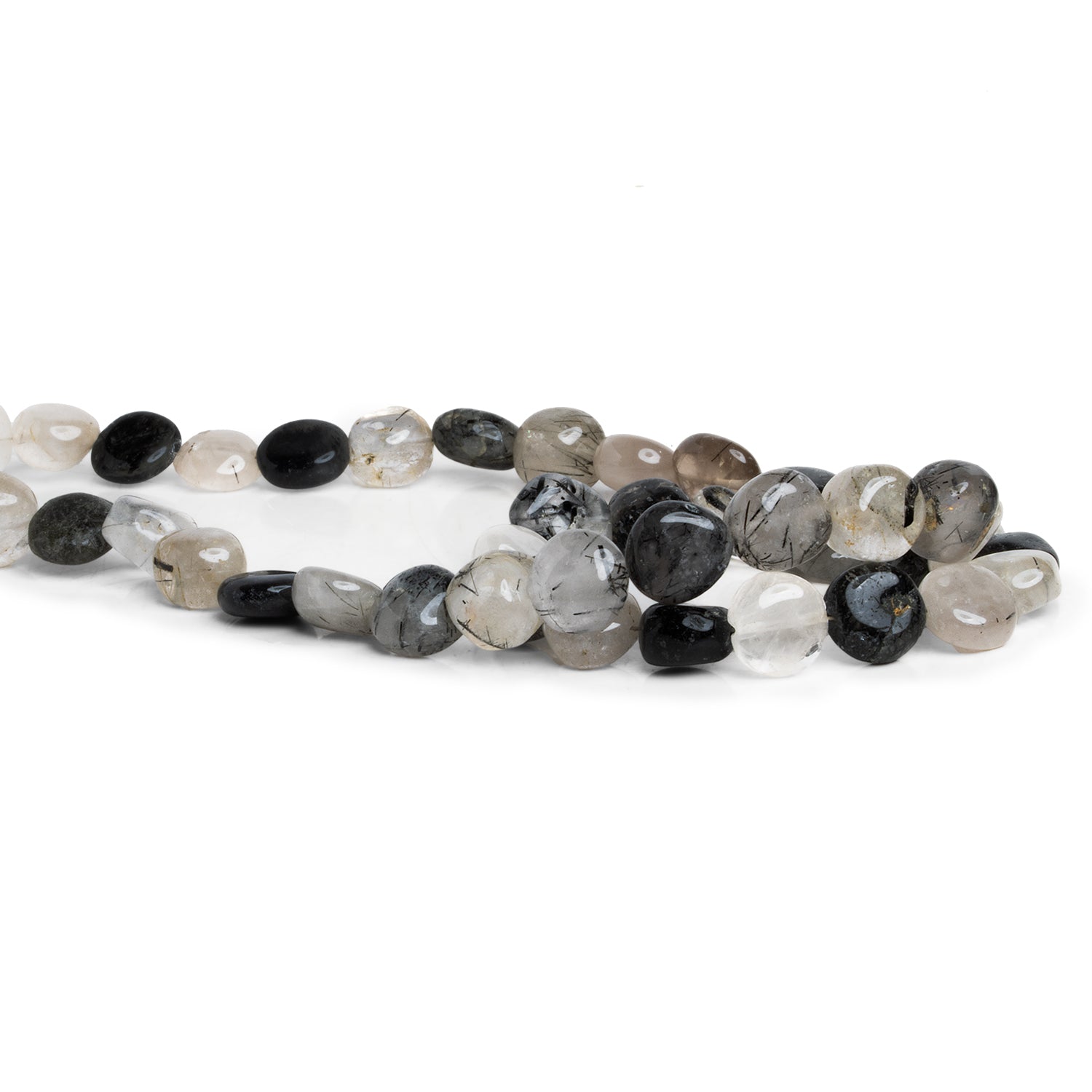 Beads range from about 8mm to 9mm in diameter. These smooth polished coins show off a handcut appearance that creates a more organic or naturalistic look. Expect beads to vary from translucent to jet black, with streaks of black tourmaline texturing most beads. These pieces are ideal for use in a wide range of jewelry designs, from necklaces to earrings and bracelets.