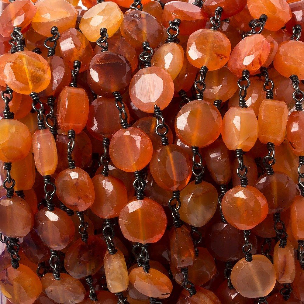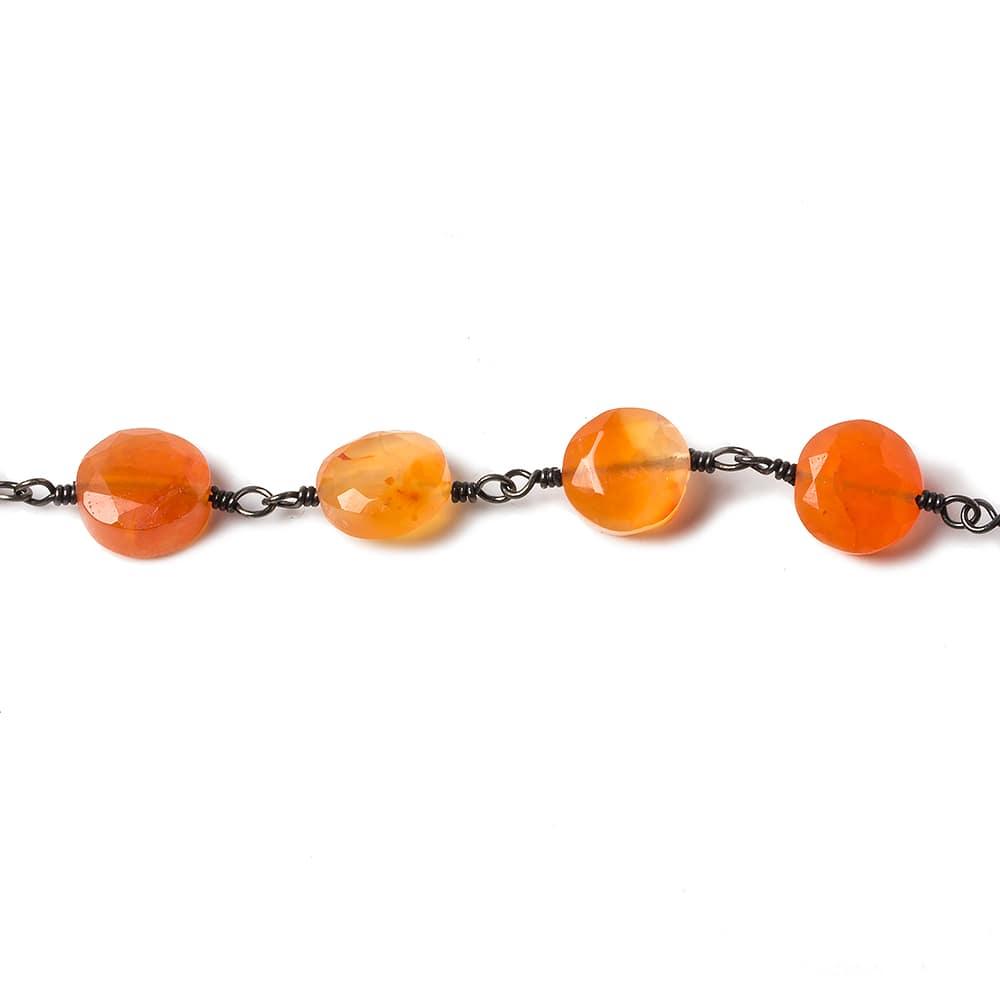 8mm Carnelian Agate faceted coin Black Gold plated Chain sold by the foot having approximately 22 pieces per foot.