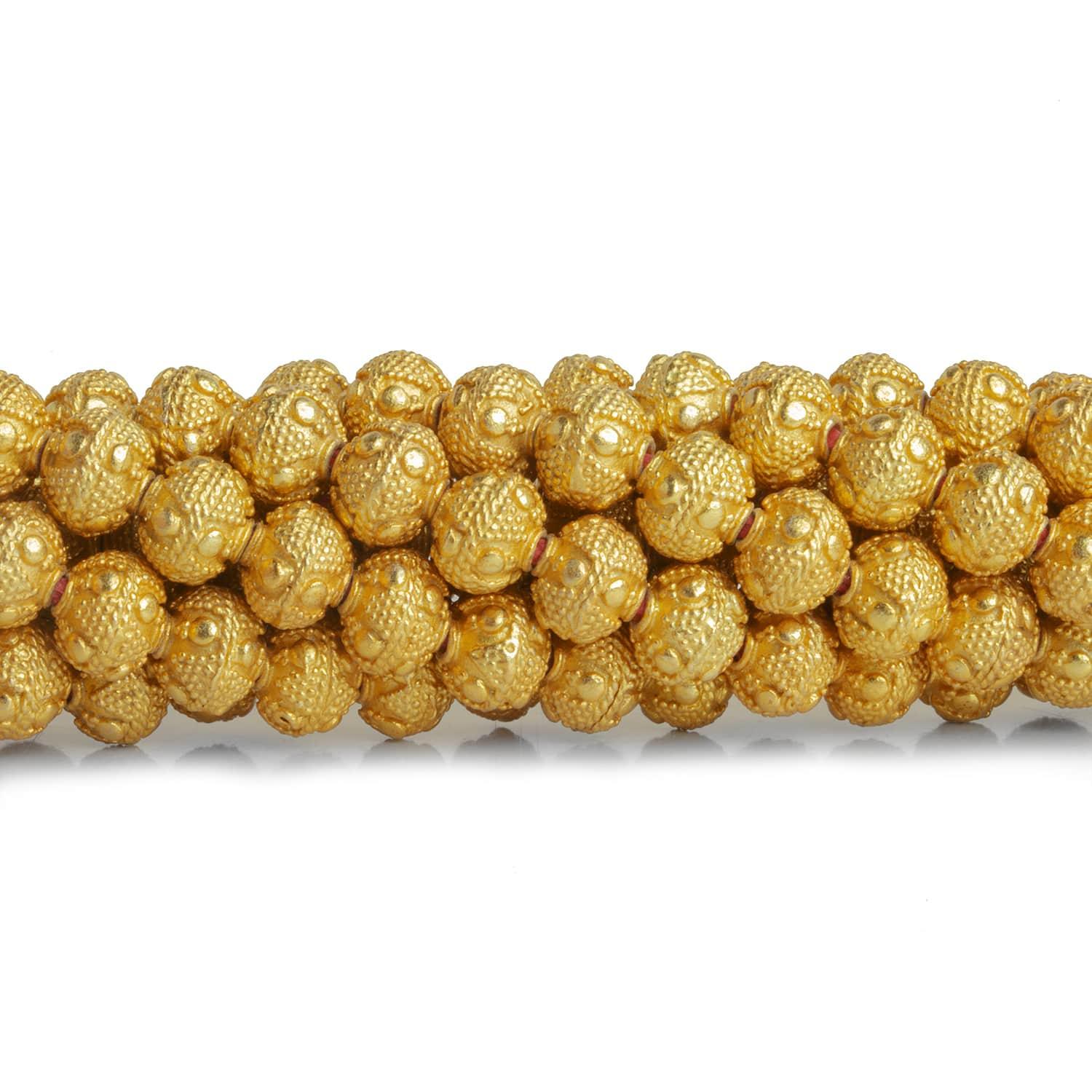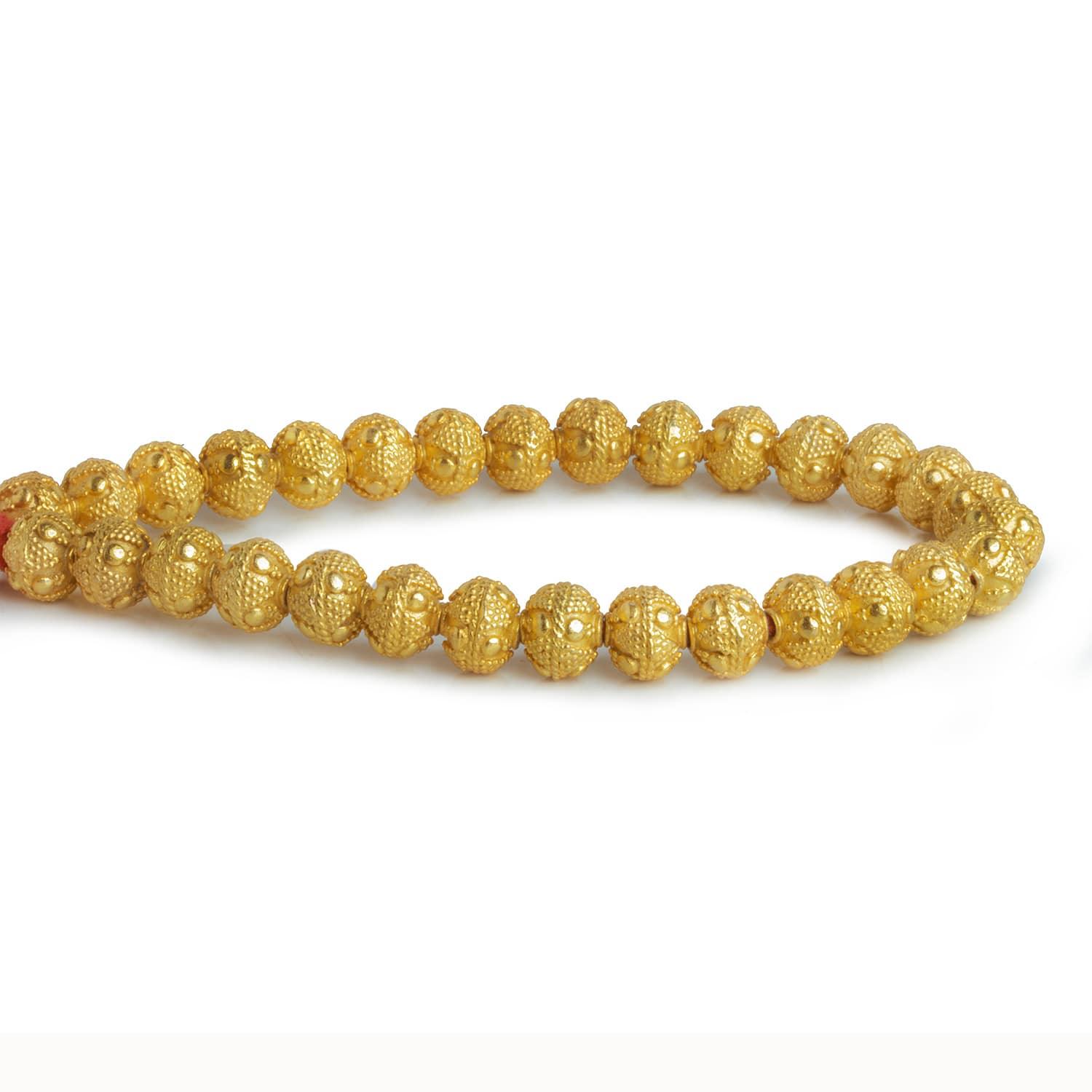 Embrace opulence with our stunning 22kt Gold Plated Copper Ornate Round Beads, meticulously crafted to elevate your jewelry designs. Each bead features an intricate and ornate design, plated in luxurious 22kt gold, radiating timeless elegance and charm. These beads offer durability and a brilliant shine that enhances any piece. Whether adorning bracelets, necklaces, or earrings, these versatile round beads add a touch of sophistication to your creations. Explore endless possibilities and adorn your jewelry pieces with the captivating beauty of our 22kt Gold Plated Copper Ornate Round Beads.