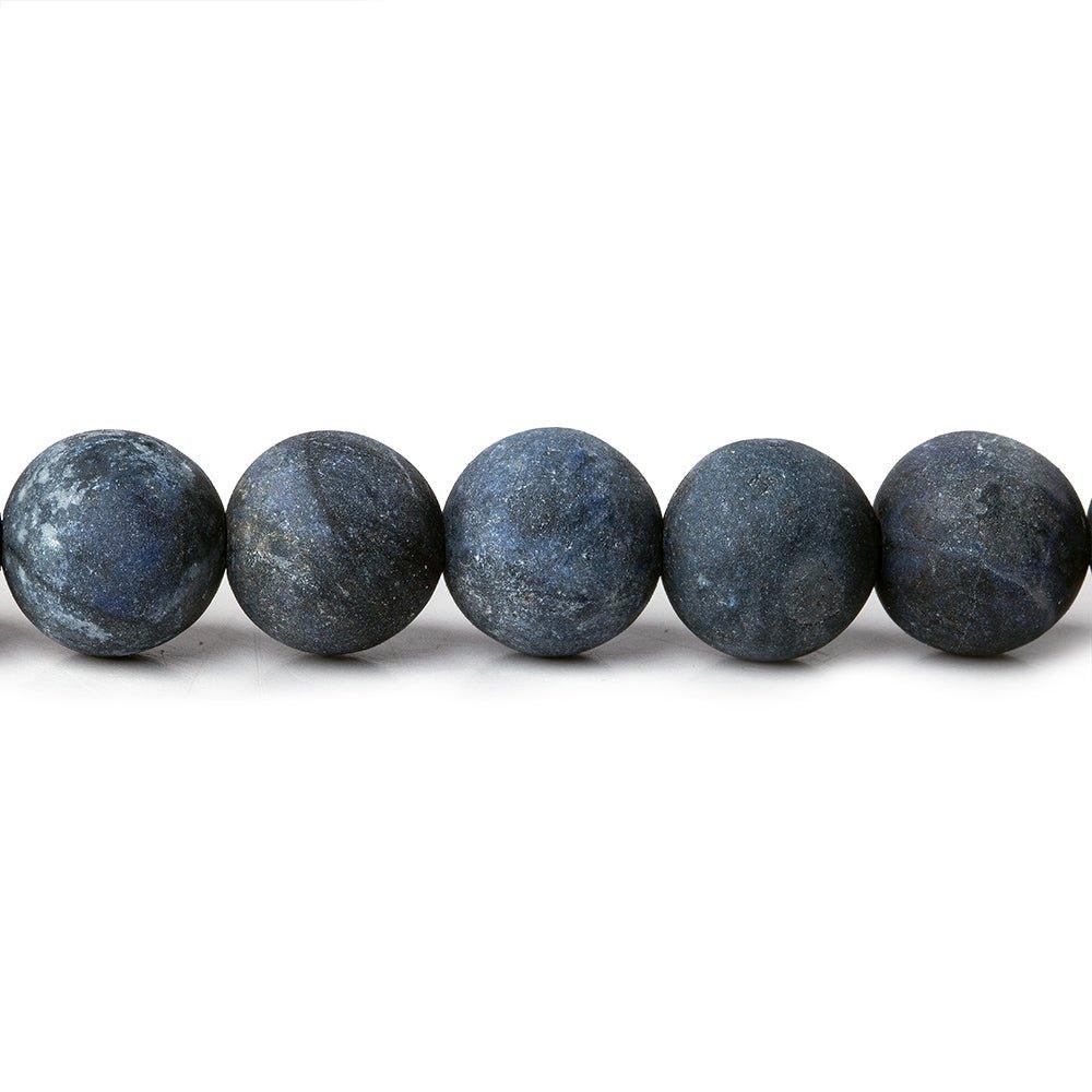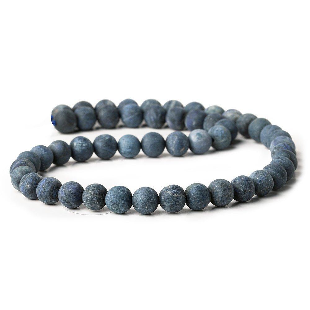 8mm Matte Dumortierite Plain round bead has a 1mm drill hole diameter on the strand measuring 15 inches with approximately 50 pieces.