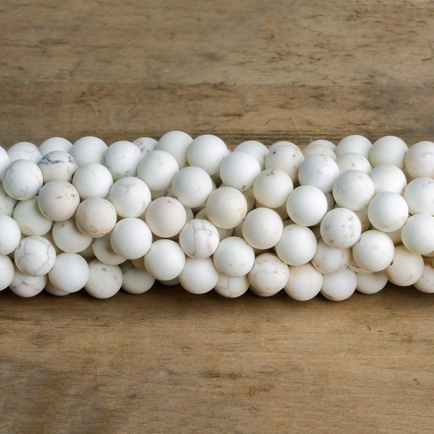 These 8mm Matte Magnesite Round strands measure 15 inches long and contain roughly 45 beads. This stone shows off a white coloration with a slight warm tone and speckles of textural elements. Its round shape is perfect for a variety of jewelry making projects.