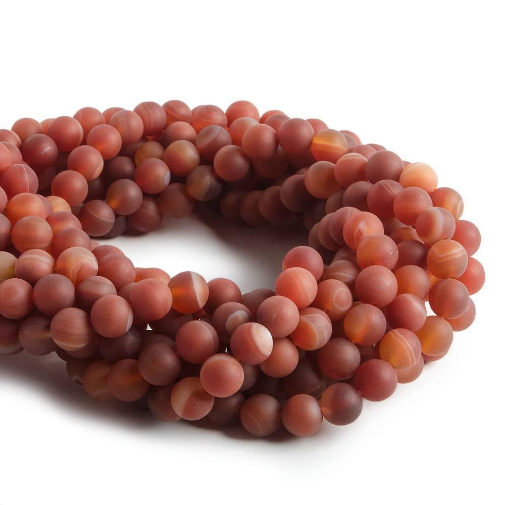 8mm diameter Matte Red Agate unfaceted round beads measure approximately 14.5 inches in length with approximately 47 pieces per strand.