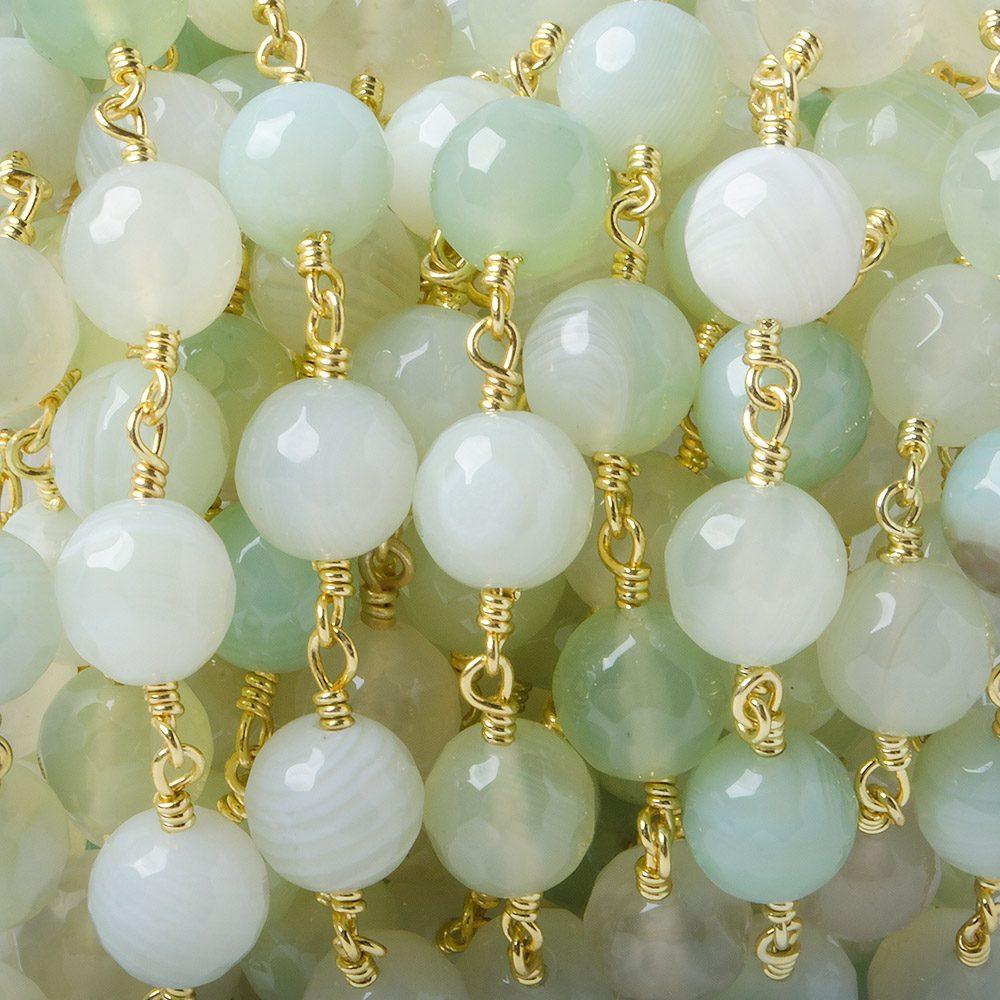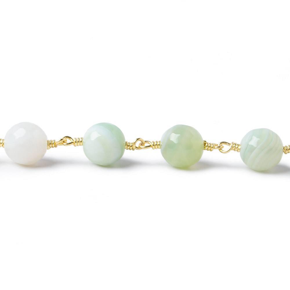 8mm Mint Green banded Agate faceted round Gold plated Chain sold by the foot having approximately with 21 pieces per foot.