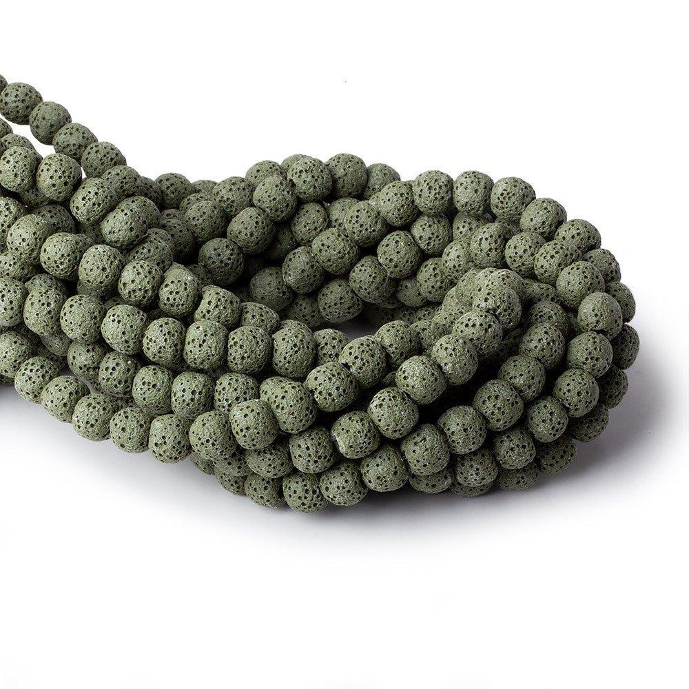 8mm Moss Green Lava Rock plain rounds 16 inch 51 beads 2mm large hole