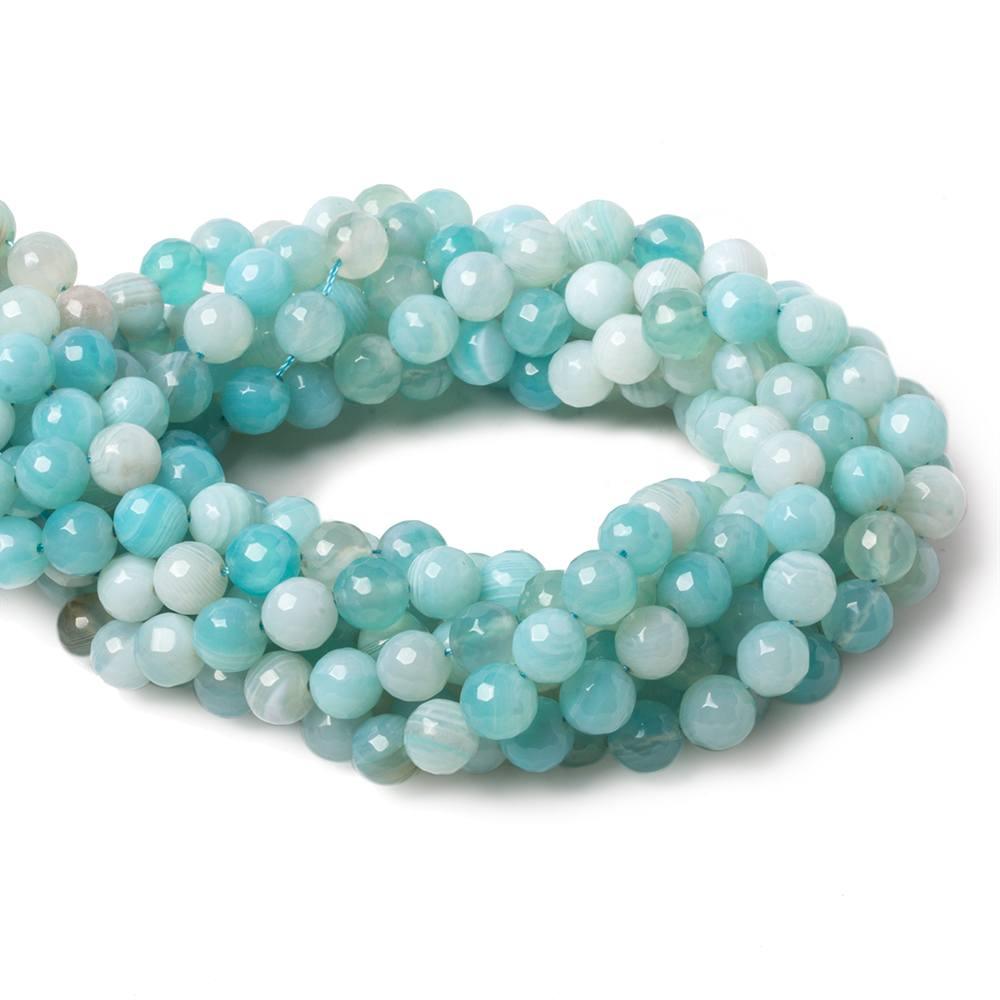 Approximates: 8mm diameter faceted round beads 15 inch 63 pieces. Beads are loose in a bag.
