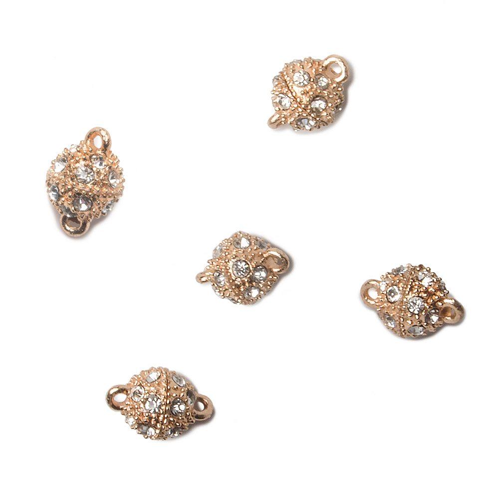 8mm Rose Gold plated Magnetic Clasp Round Rhinestone Set of 5