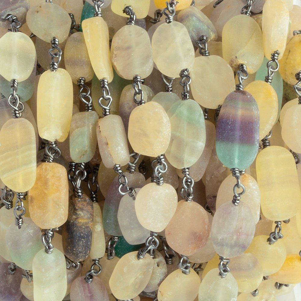 8x7mm-14x8mm Matte Fluorite Plain Nugget Black Gold Chain by the Foot 19 pieces