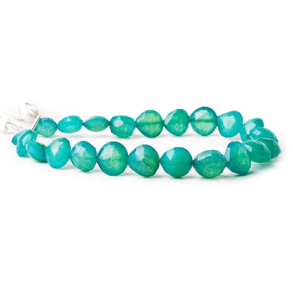 8x8-11x11mm Teal Blue Chalcedony straight drilled faceted hearts 8 inch 22 pieces