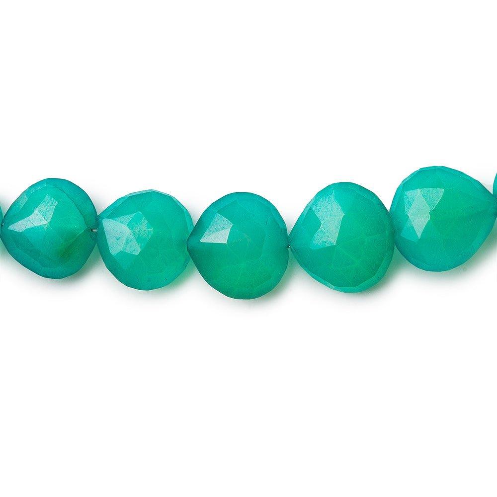 8x8-11x11mm Teal Blue Chalcedony (color treated) straight drilled faceted hearts 8 inch 22 pieces