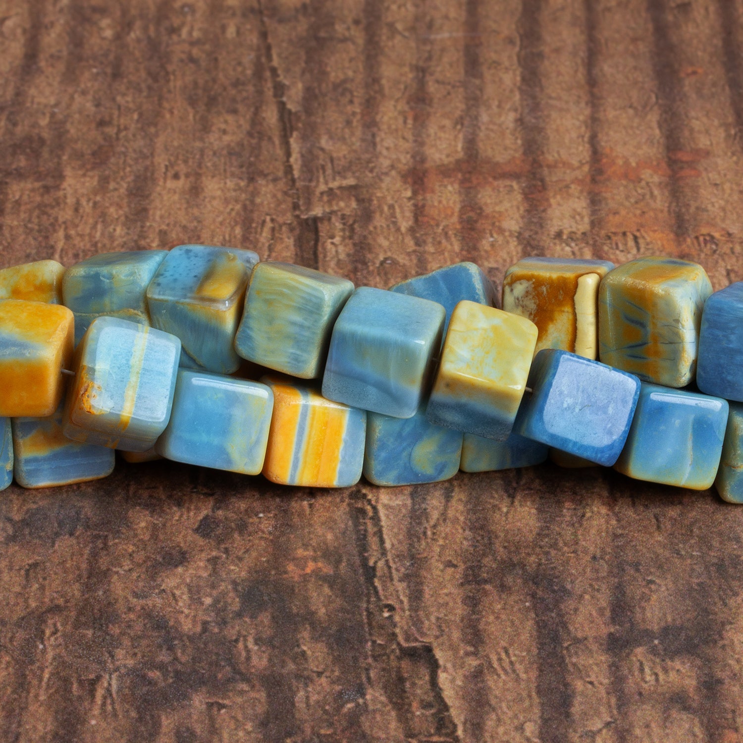 The cube cut gives these opals a contemporary edge, while the opalescent polish adds a smooth, reflective luster. Whether you're designing statement necklaces, structured cuffs, or colorful spacers, these beads bring a bold, artisan energy to any beading project. The dramatic contrast in hues ensures each strand is full of personality, movement, and irresistible visual interest.