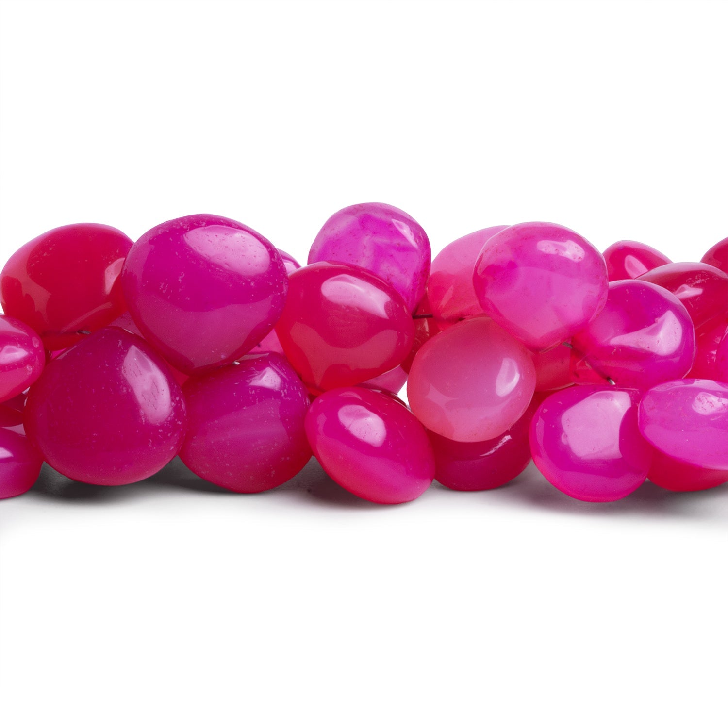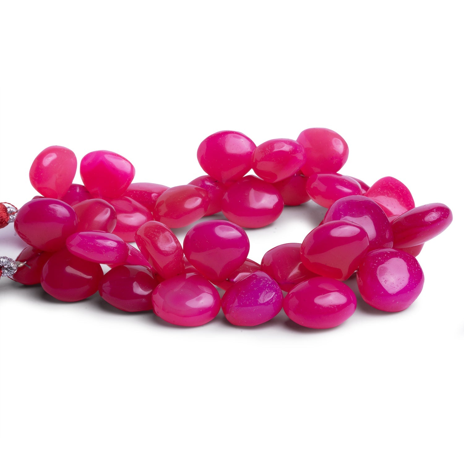 Measuring approximately 9–15mm, these beads are shaped into charming heart forms and polished to a smooth, glossy finish. The plain surface highlights the saturated pink hues and soft glow of the chalcedony, while the graduated sizes create a pleasing flow along the strand. Their playful shape and brilliant color make them perfect for statement jewelry, romantic designs, and bold accents in creative beadwork.
