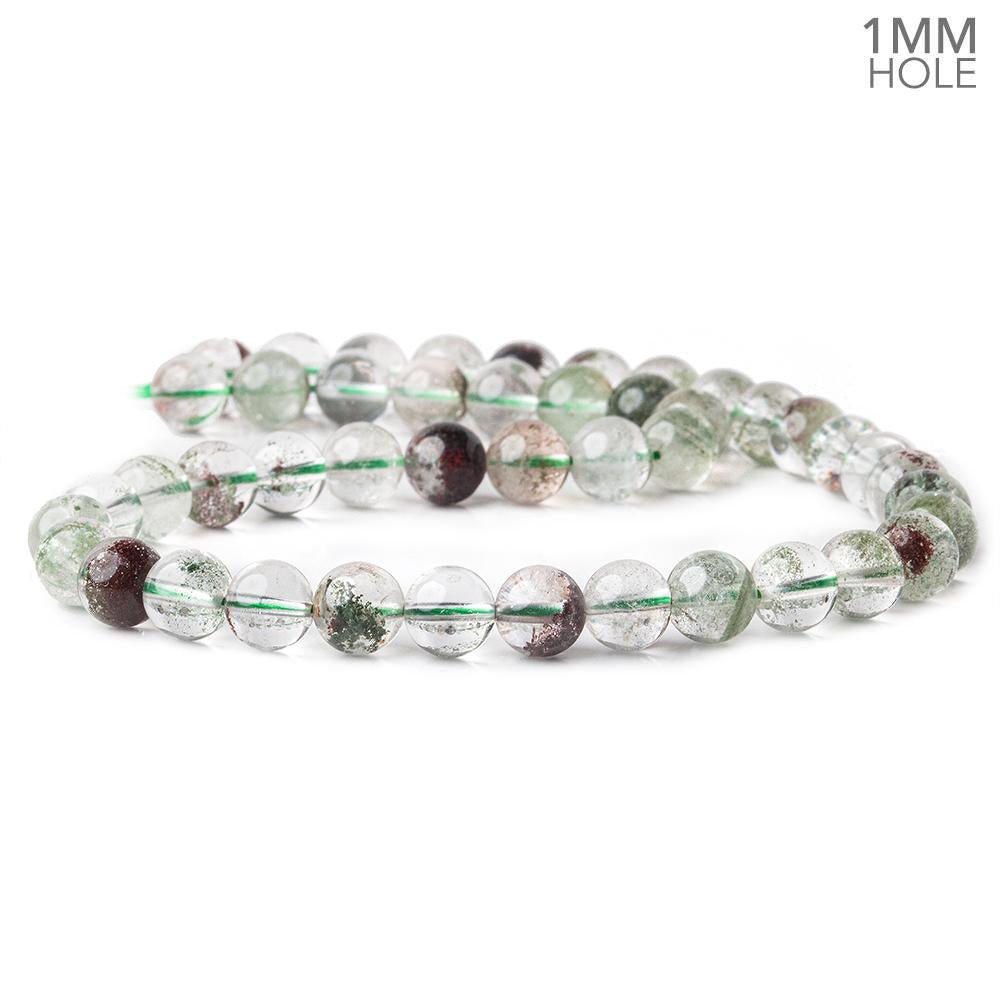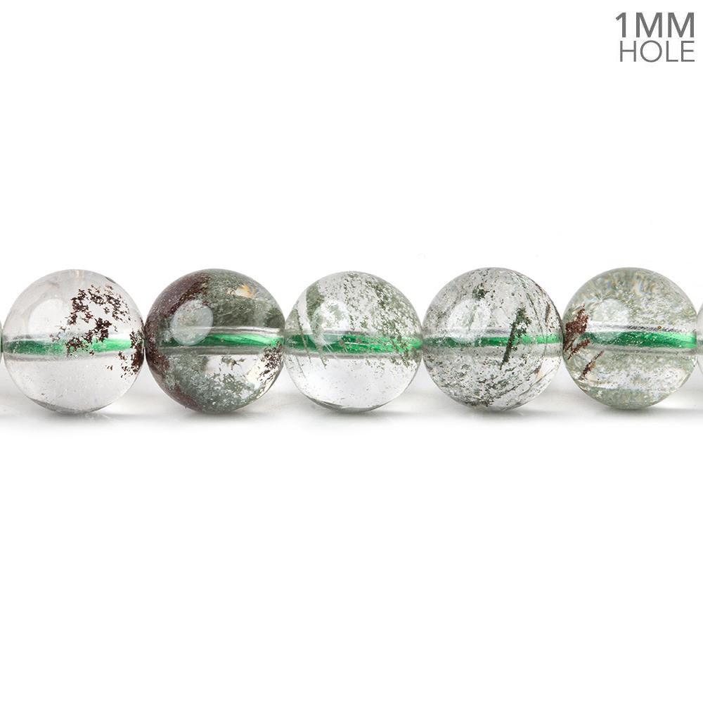 9mm Moss Quartz plain round per 15.5 inch strand of approximately 45 beads. Beads have 1mm Large Drill Hole.
