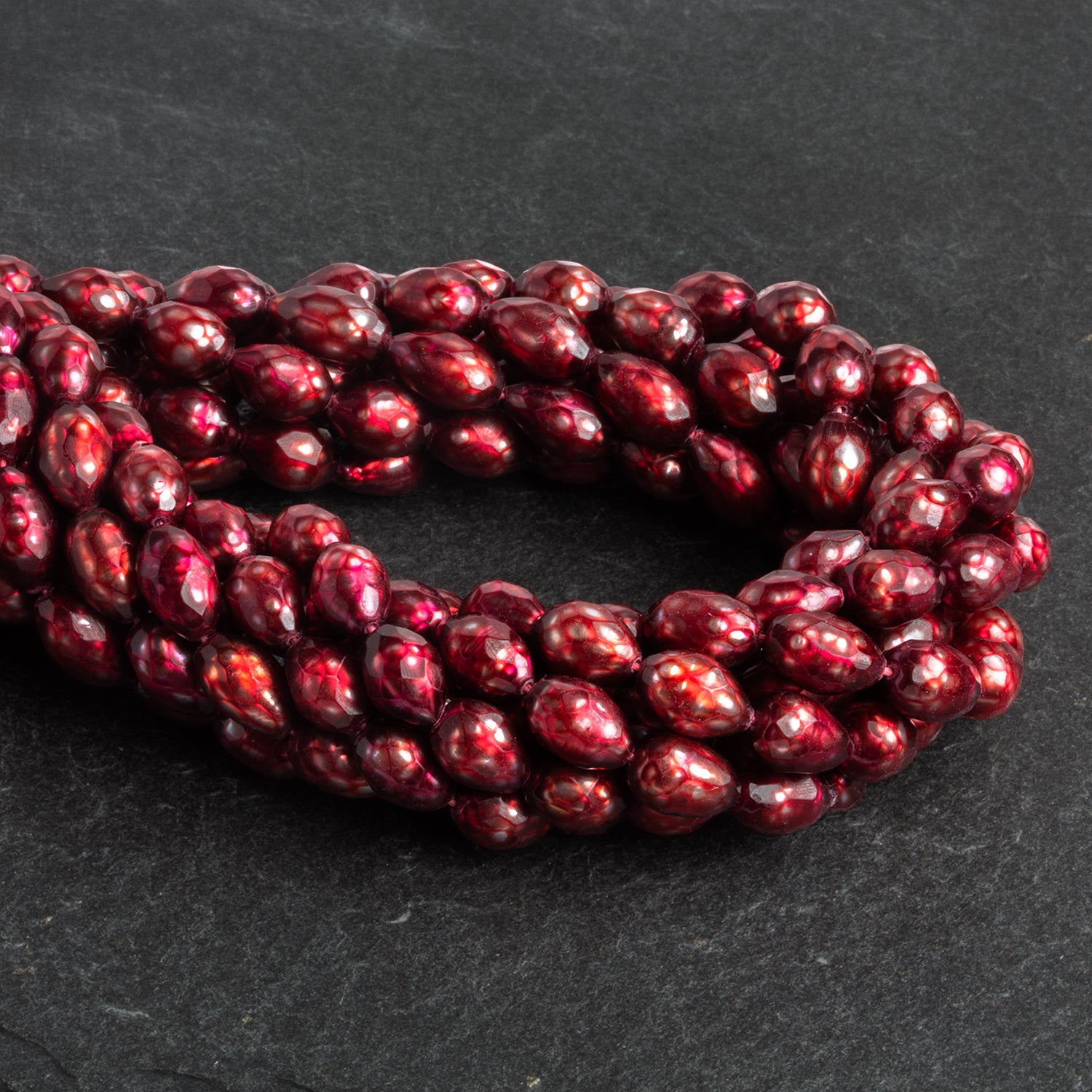 9x6mm Red Faceted Oval Freshwater Pearls 16 inch 45 beads