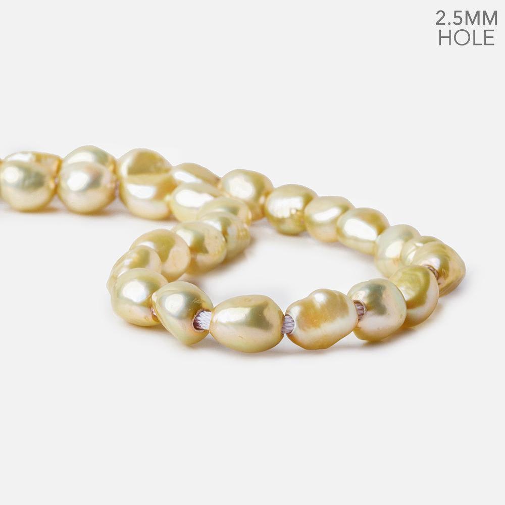 Length 15.5" Strand | Approx. Bead Size 8-9mm | 2mm drill hole 9x8-11x9mm Yellow Baroque 2.5mm Large Hole Pearls