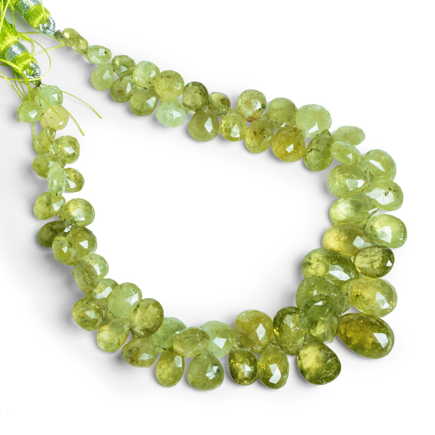 These Grossular Garnet Faceted Pears offer a stunning array of vibrant green hues, ranging from soft chartreuse to deeper olive tones. With their faceted surfaces, these beads catch the light beautifully, creating a shimmering, multi-dimensional effect. Measuring from approximately 5x4mm to 13x8mm, they offer a range of sizes perfect for various design projects.