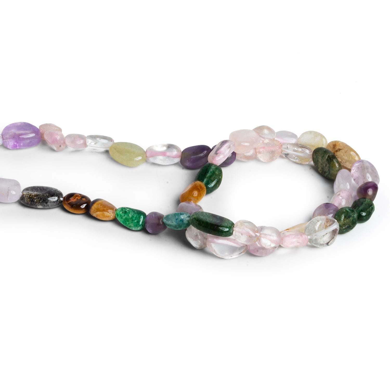 These 9x6mm Multi Gemstone Plain Ovals feel like a miniature treasure box on a strand — soft pink quartz, amethyst, aventurine, citrine, clear quartz, and smoky tones all mixed together in smooth, luminous shapes. Their simple oval shape makes them incredibly versatile, layering beautifully with pearls, gold chains, or bold statement focals. Perfect for designs that want natural color, subtle sparkle, and an easy, elevated look without trying too hard.