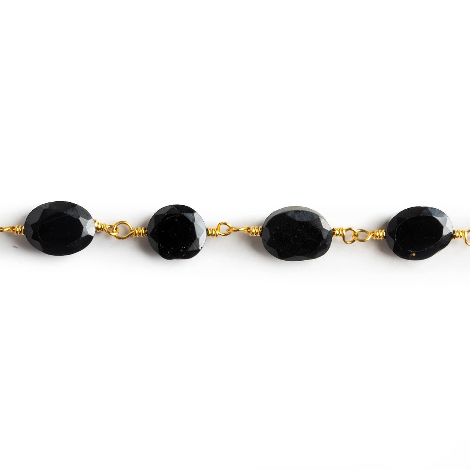 Oval beads measure about 9x7mm. These jet black bodies showcase beautiful faceting that looks great on our hand wrapped black gold plated chain. Expect some variation in bead size & shape.