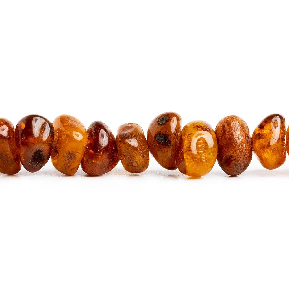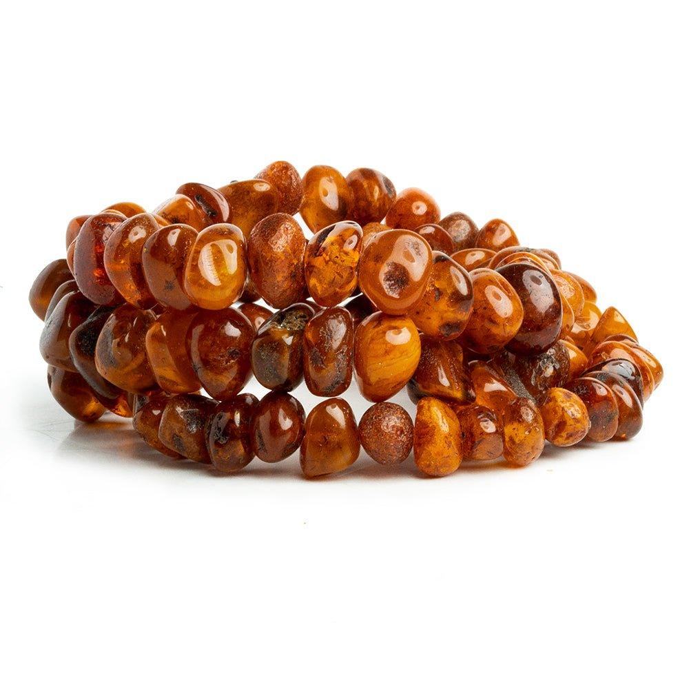 Beads average about 18x14mm. Our Natural Baltic Amber plain chip beads are organic gems formed 28 to 54 million years old from fossilized tree resin. These translucent medium dark honey colored beads are presented on a pre-strung cord that is 24 inches long with a screw post clasp for a wonderful value in natural Baltic Amber.