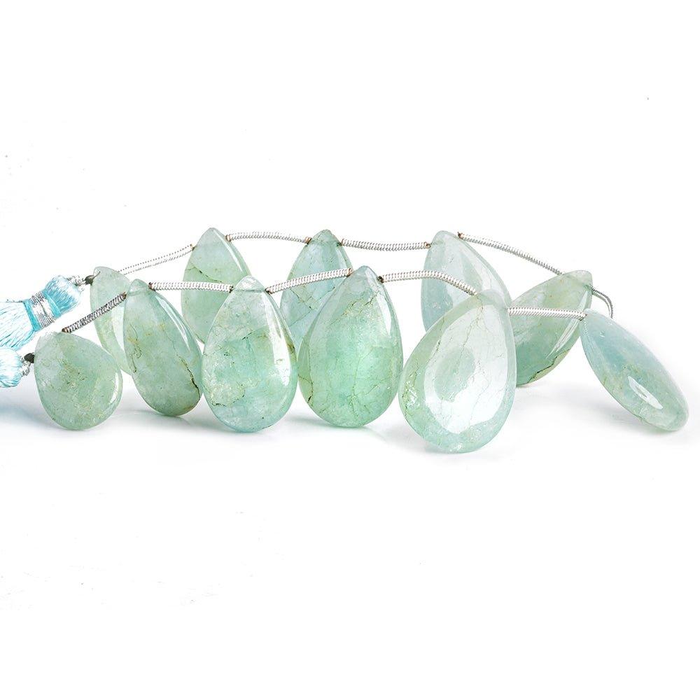 These 8 inch Aquamarine Plain Pear Beads offer a nicely polished finish, showcasing the milky aquamarine's rich color. With expert craftsmanship and quality materials, they are sure to elevate any jewelry project.