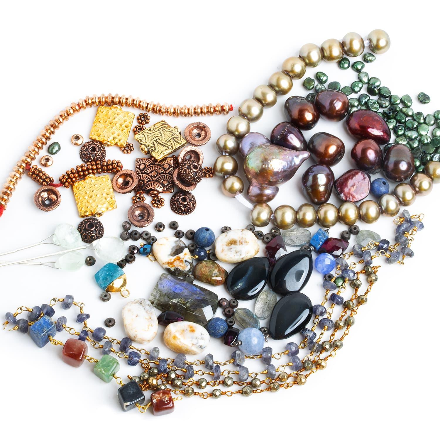 Includes the full assortment of pearls, metals gemstone beads and handwrapped chain seen here.