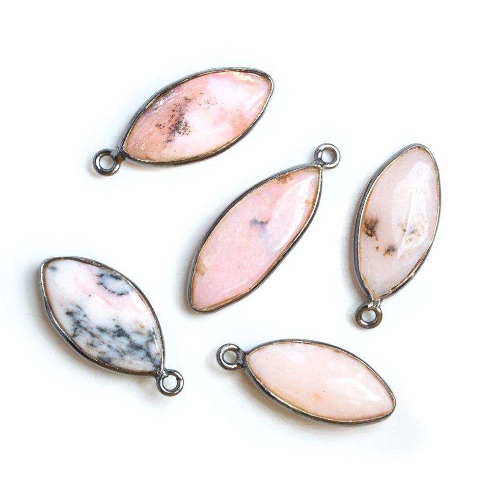 Black Gold Bezeled Pink Peruvian Opal Marquise Pendant 1 Piece