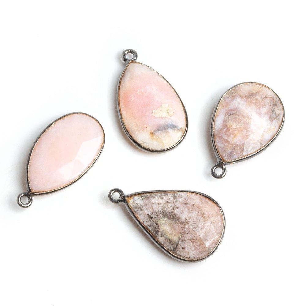 Black Gold Bezeled Pink Peruvian Opal Pendants - Lot of 4