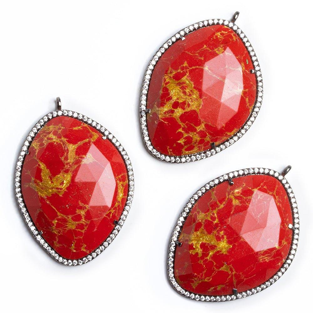 Black Gold CZ Bezel Red Resin Oval Pendant