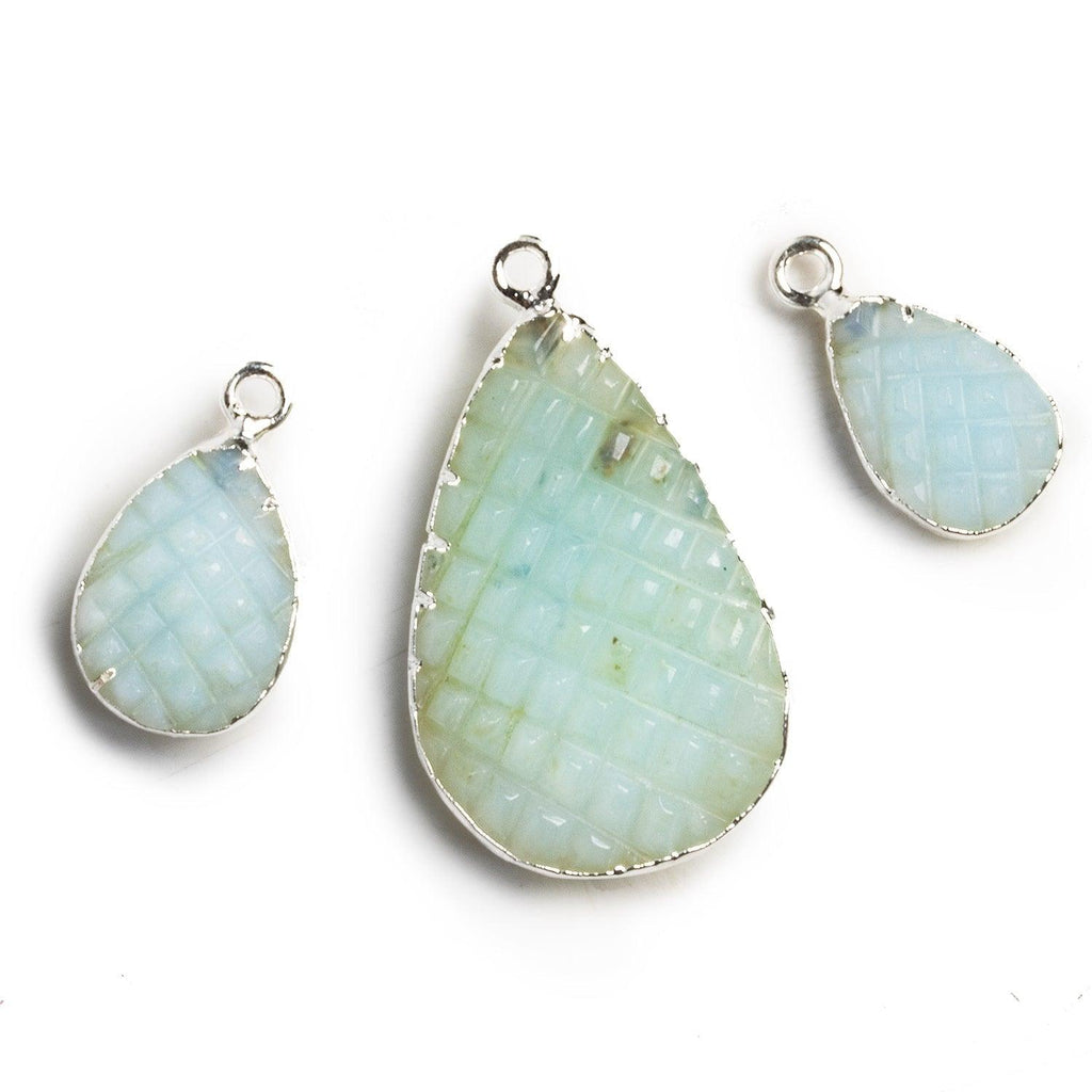 Silver Leafed Carved Blue Peruvian Opal - Lot of 3