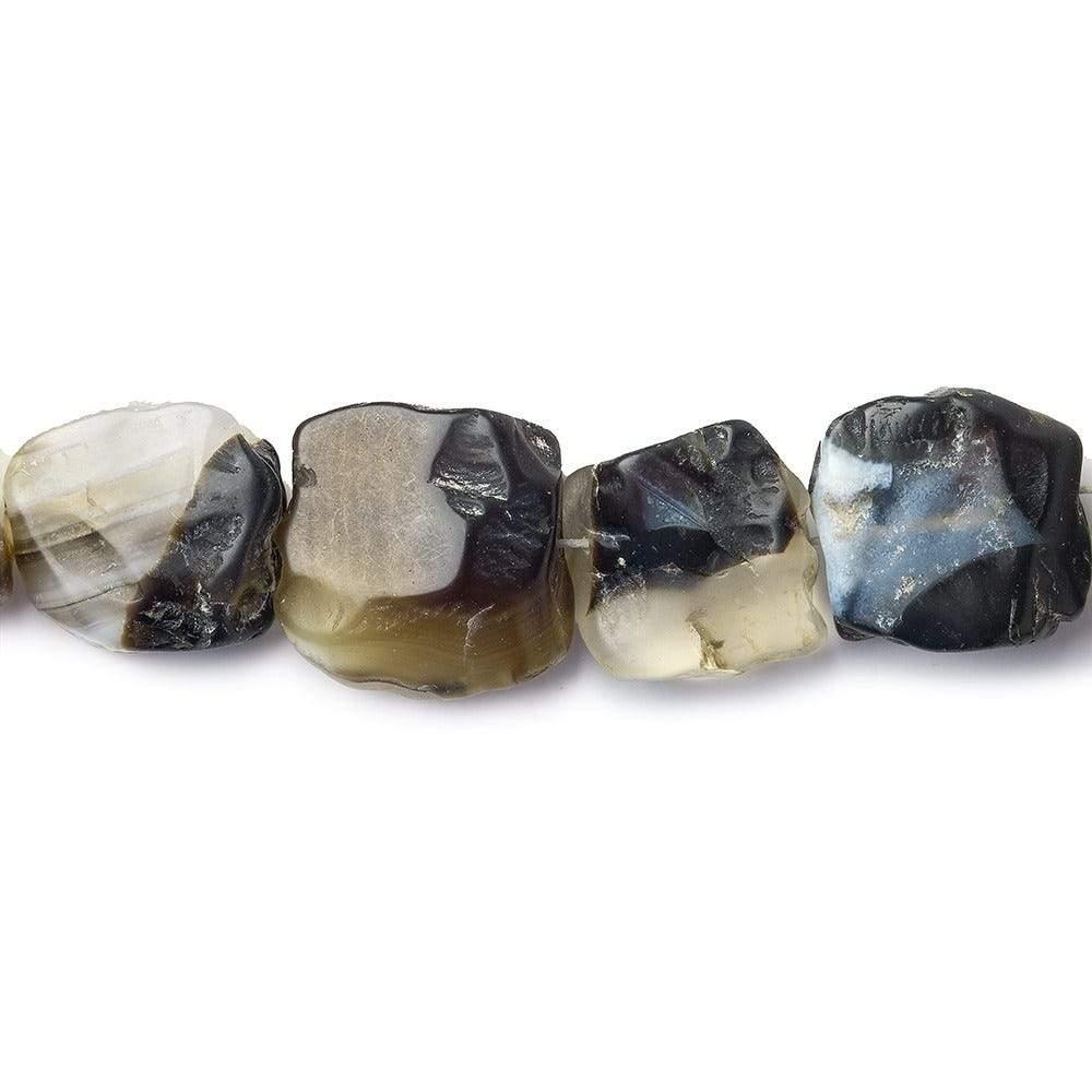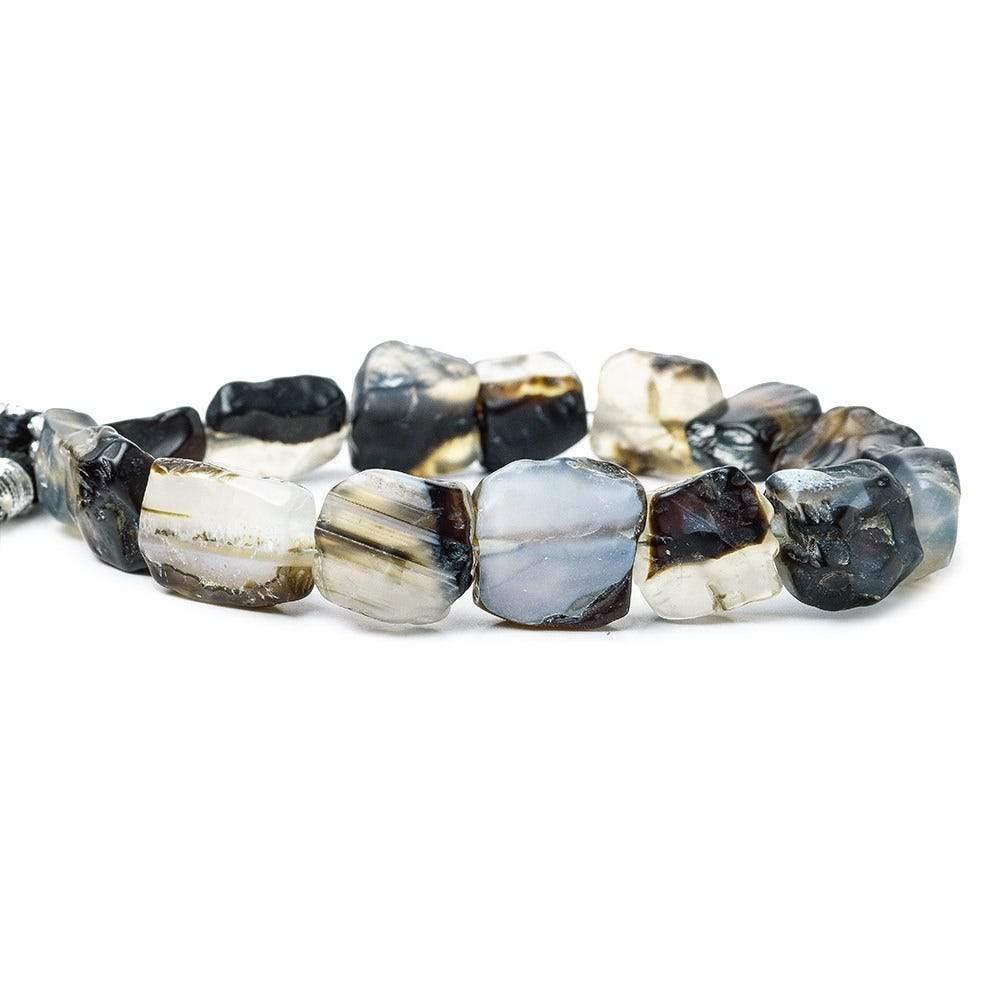 Black and Colorless Agate Beads Tumbled Hammer Faceted Rectangle and Square measure approximately 11x9mm to 17x10mm in size, have a waxy luster, beads are chip faceted for a natural look then are double tumbled to smooth out the facets, the stones are translucent in quality, the body colors are a natural moderately to deeply saturated Black hue with natural milky white hues intermingled, the edges are have a melted-like appearance and irregular surface, and these Hammer Faceted beads have a great feel and heft for our newest line of Tumbled Hammer Faceted gems.Hammer Faceted beads are faceted using the Ancient Technique of hand chipping the gemstone to create its shape, the gemstones have a natural appearance with crisp edges which are tumbled to smooth out any roughness on the edges, the stones are Translucent to Opaque in quality, the body colors can be natural or color treated to any hue in the rainbow, the gemstones present with the natural internal characteristics of the gemstones, the Hammer Faceted Tumbled gemstone group will have an edge with a melted appearance due to the secondary shaping after chip faceting, and this Hammer Faceted group show excellent weight, great presence for shape, have a great feel, and add unlimited color options.