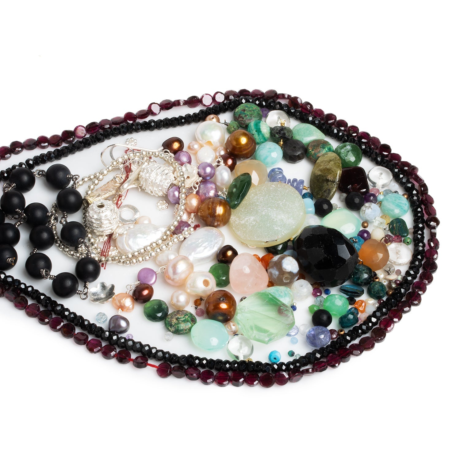 Includes the full assortment of pearls, metals gemstone beads and handwrapped chain seen here.