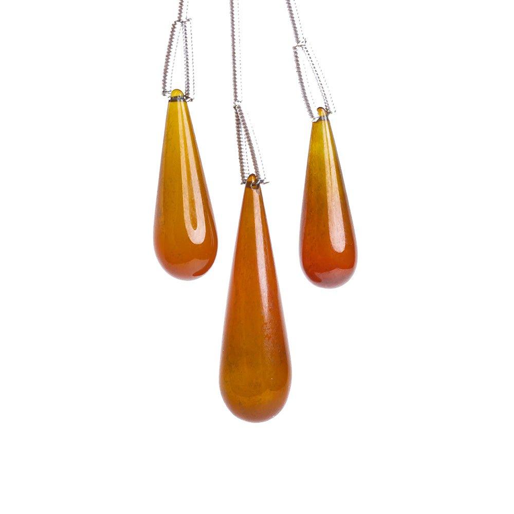 Caramel Chalcedony Plain Teardrop Focal Beads 3 pieces