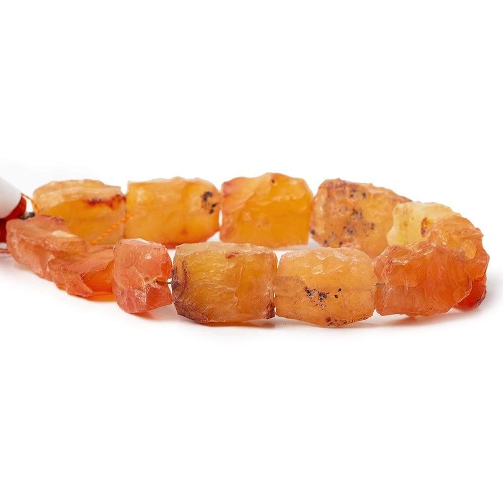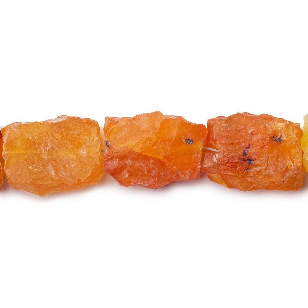Melon Multi-tonal Agate Hammer Faceted Rectangles measure approximately 12x13mm up to 17x14mm in size, have a vitreous luster, beads are chip faceted for a natural look, the stones are brilliant with golden tones within the agate bodies, the bodies are semi-translucent, and the treated body colors are a light to dark cantalope hue with natural internal characteristics.Hammer Faceted beads are faceted using the Ancient Technique of hand chipping the gemstone to create its shape, the gemstones have a natural appearance with crisp edges which are tumbled to smooth out any roughness on the edges, the stones are Translucent to Opaque in quality, the body colors can be natural or color treated to any hue in the rainbow, the gemstones present with the natural internal characteristics of the gemstones, the Hammer Faceted Tumbled gemstone group will have an edge with a melted appearance due to the secondary shaping after chip faceting, and this Hammer Faceted group show excellent weight, great presence for shape, have a great feel, and add unlimited color options.