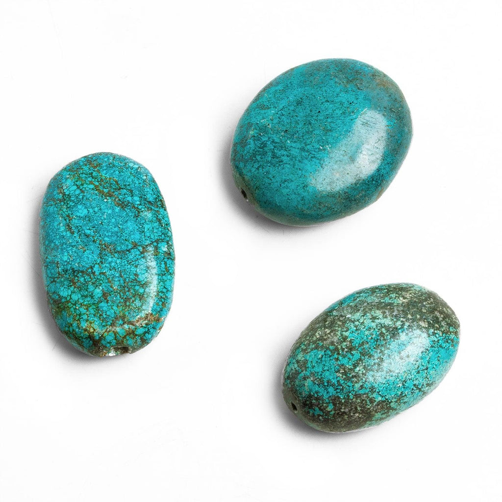 Beads average about 33x29mm-42x35mm. These nuggets are straight drilled and feature various shades of blue and green in a variety of textures.
