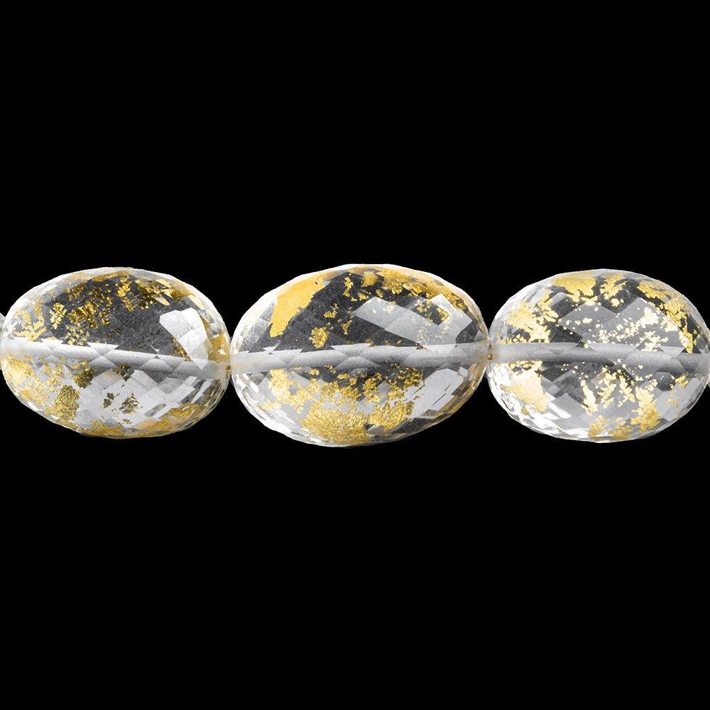 Crystal Quartz with Gold Leaf Faceted Oval Beads 16 inch 27 pieces