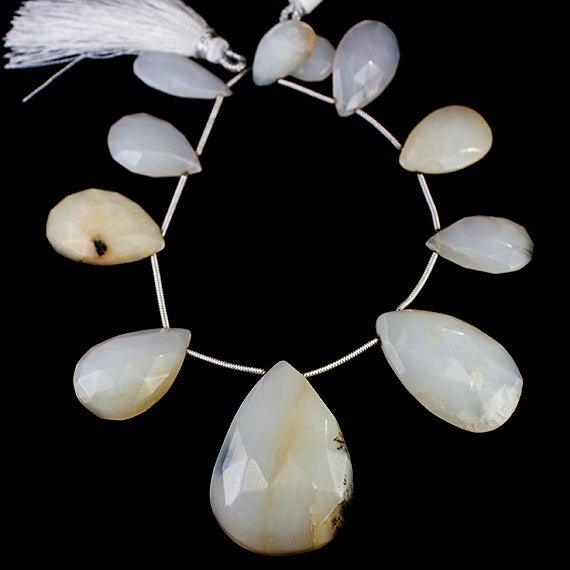 approximate 8 inch length strand of 11 beads measuring between 15x10mm up to 33x23mm in size